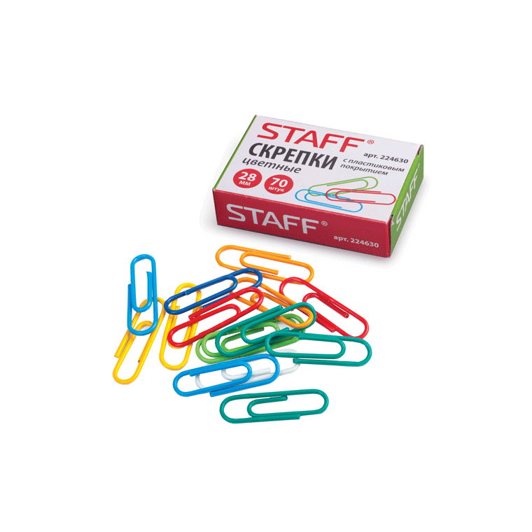 Скрепки канцелярские 28 мм цветные, 70 шт, STAFF, картонная коробка./В упаковке шт: 1