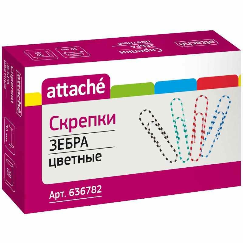 Скрепки Attache Зебра с полимерным покрытием,50 мм,разноцветные,50 шт/уп
