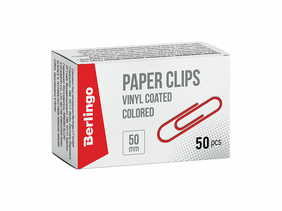 Скрепки 50мм, Berlingo, 50шт., цветные, карт. упак. BK2519 4260107490609