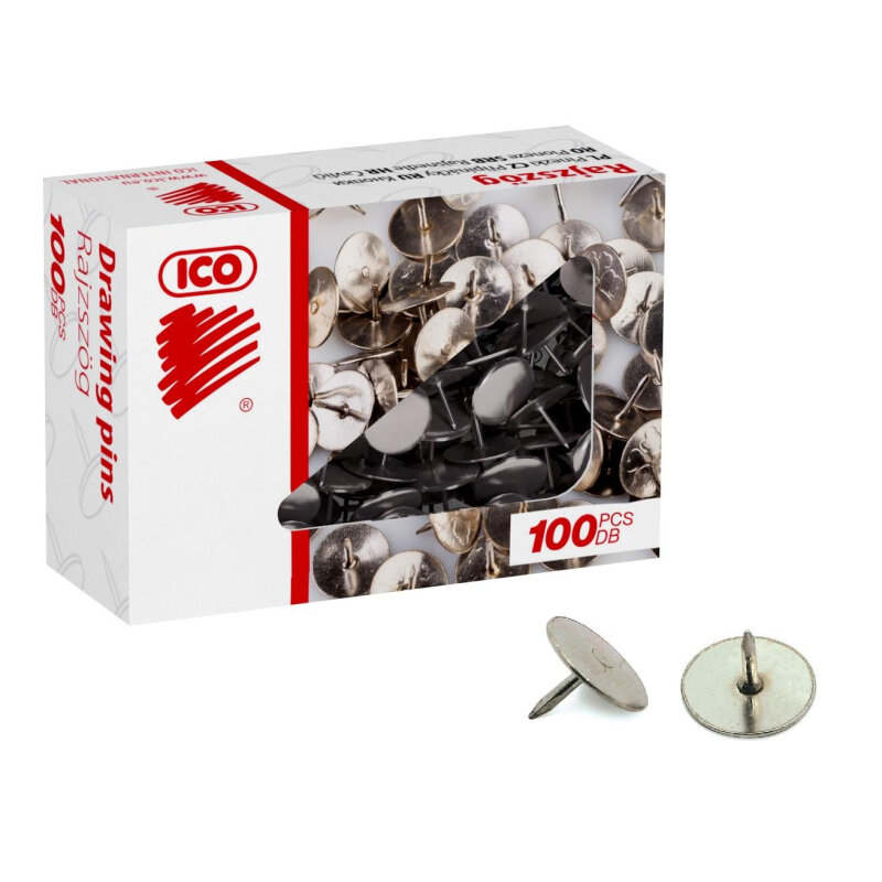 Купить Кнопки канцелярские ICO стальные, 11 мм, стальные, 100 шт. карт. уп
