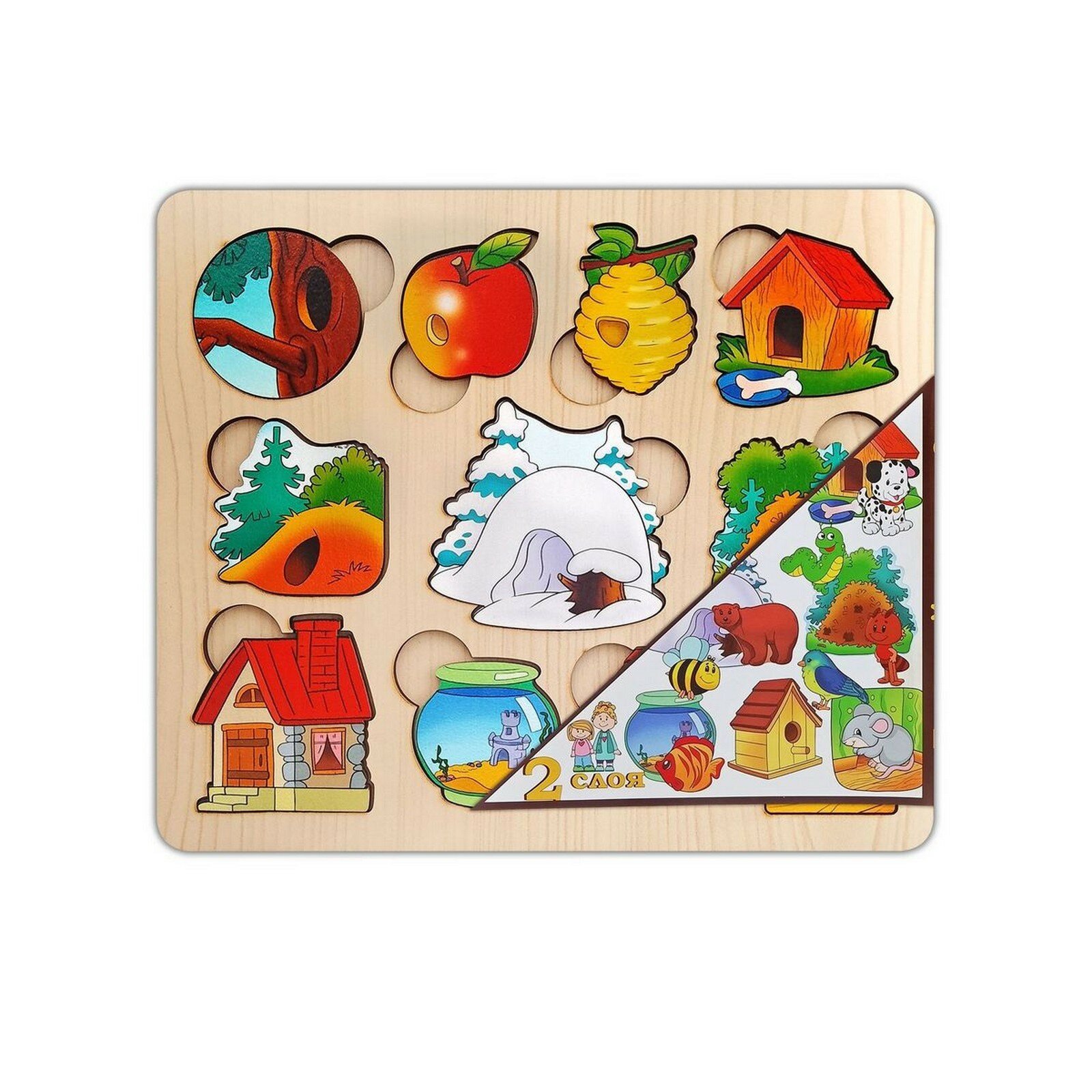 Нескучные игры Пазлрамка Где чей домик?, дерево (2 слоя) 7993