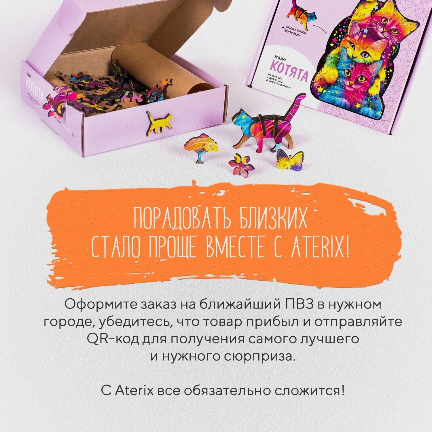 Купить Пазлы из дерева для детей и взрослых Котята ZUFA Aterix 164 детали 20х30 см.