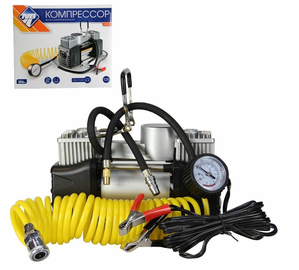 Компрессор NOVA BRIGHT АК-75 Компрессор двухпоршневой, до 75 л/мин.,140 PSI, 12В, металлический корп