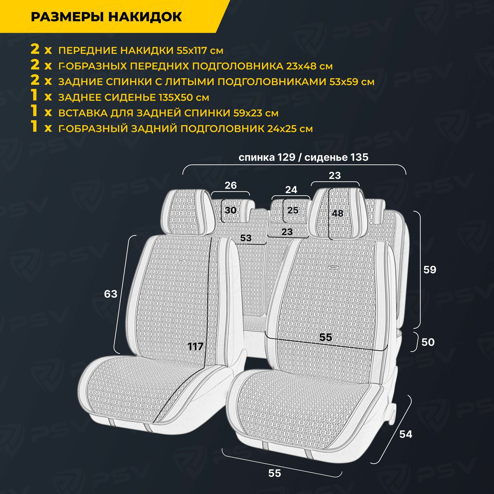 Накидка на сиденье PSV Profit комплект экокожа/лен 9 пр. черная* PSV 134341 | цена за 1 шт