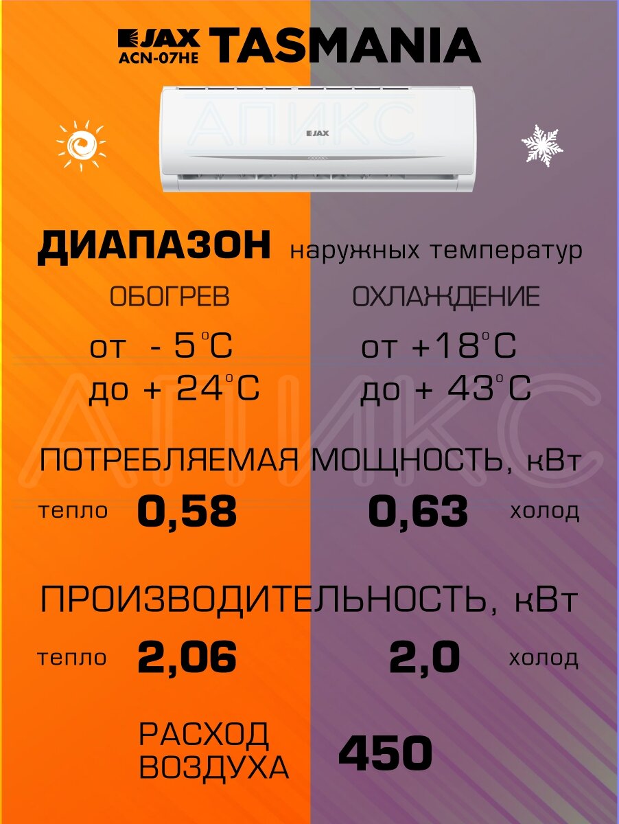 Сплит система JAX TASMANIA ACN-07HE бытовой кондиционер до 21 м2