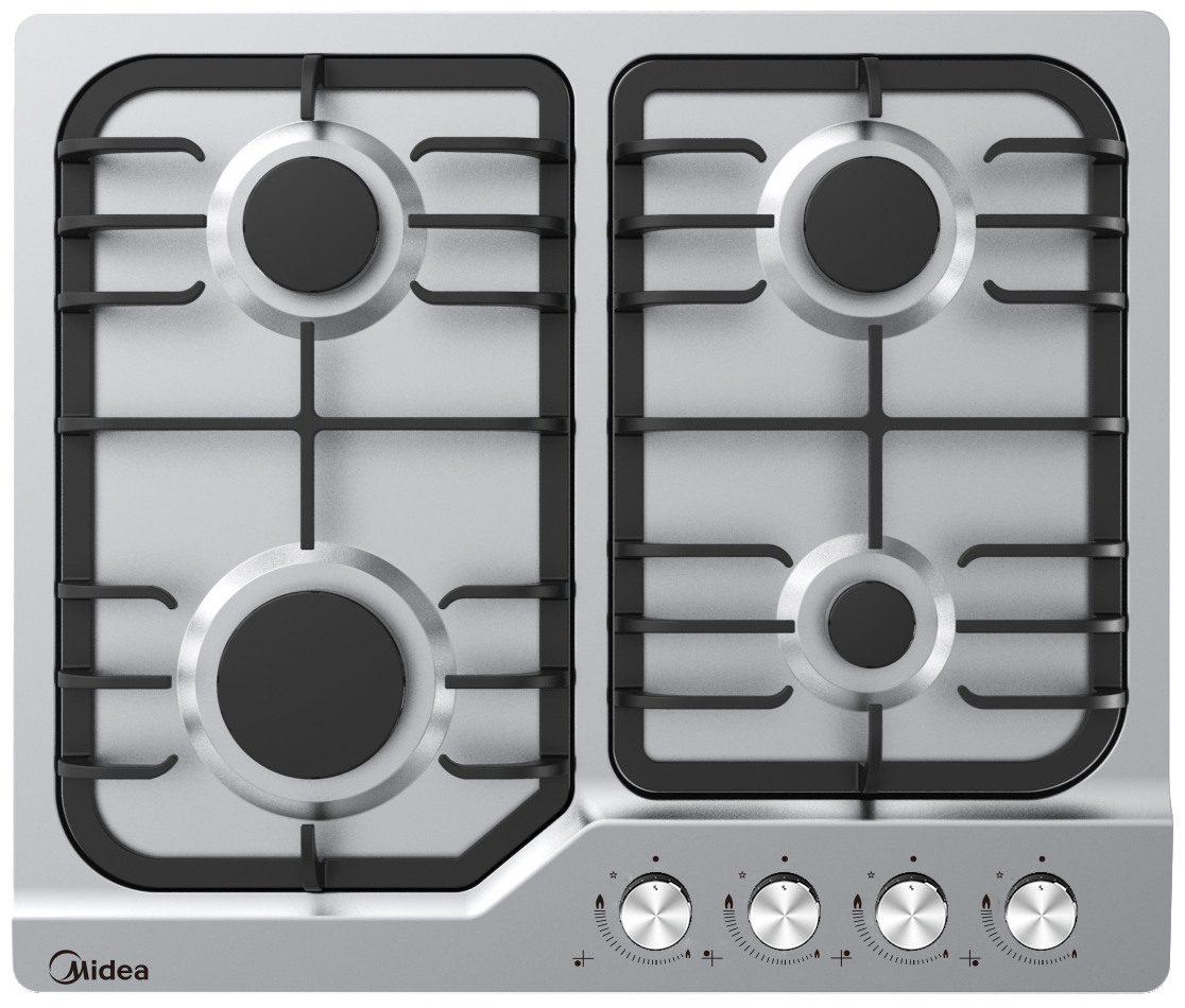 Купить Газовая варочная поверхность Midea MG687/X, нержавеющая сталь, 4 конфорки, чугун.