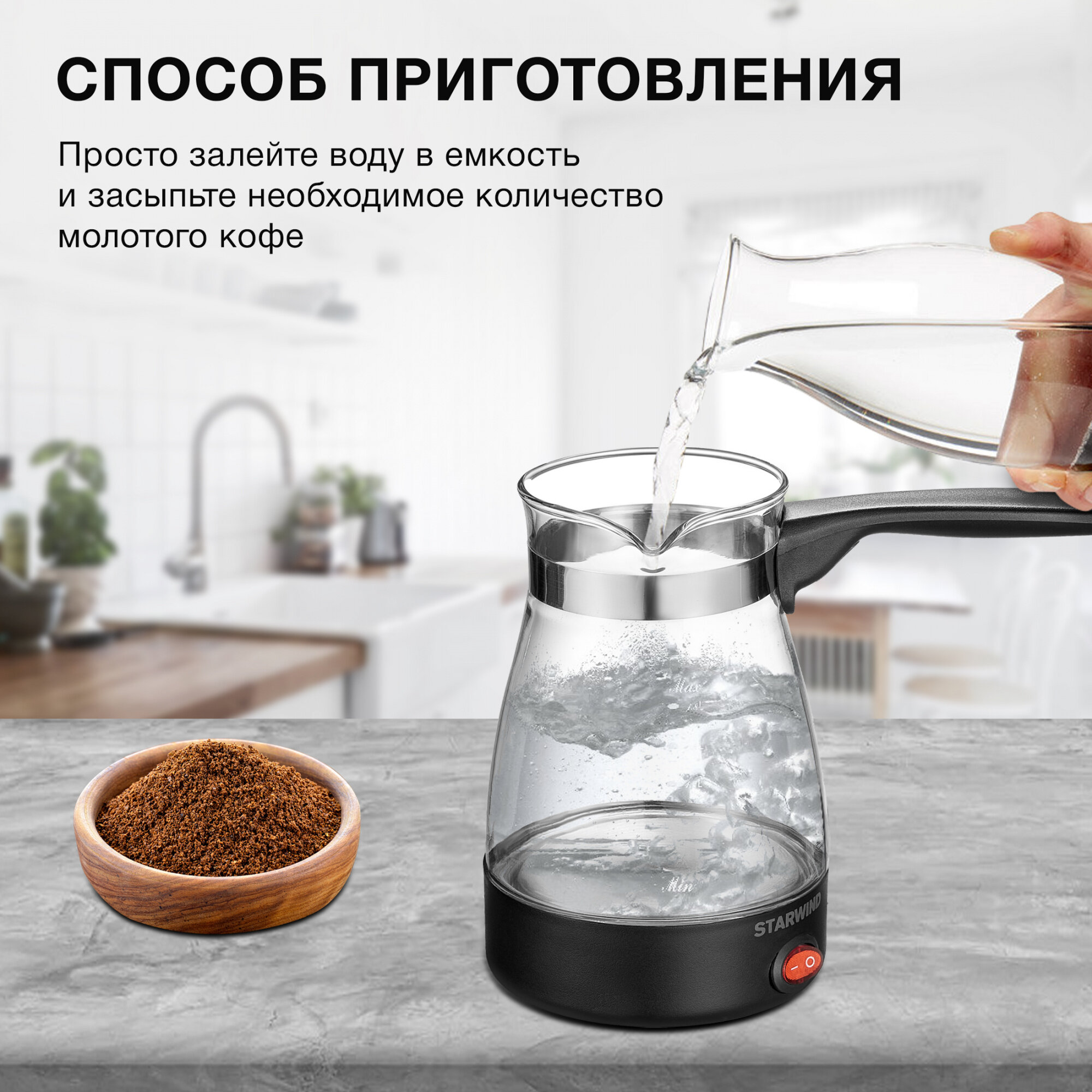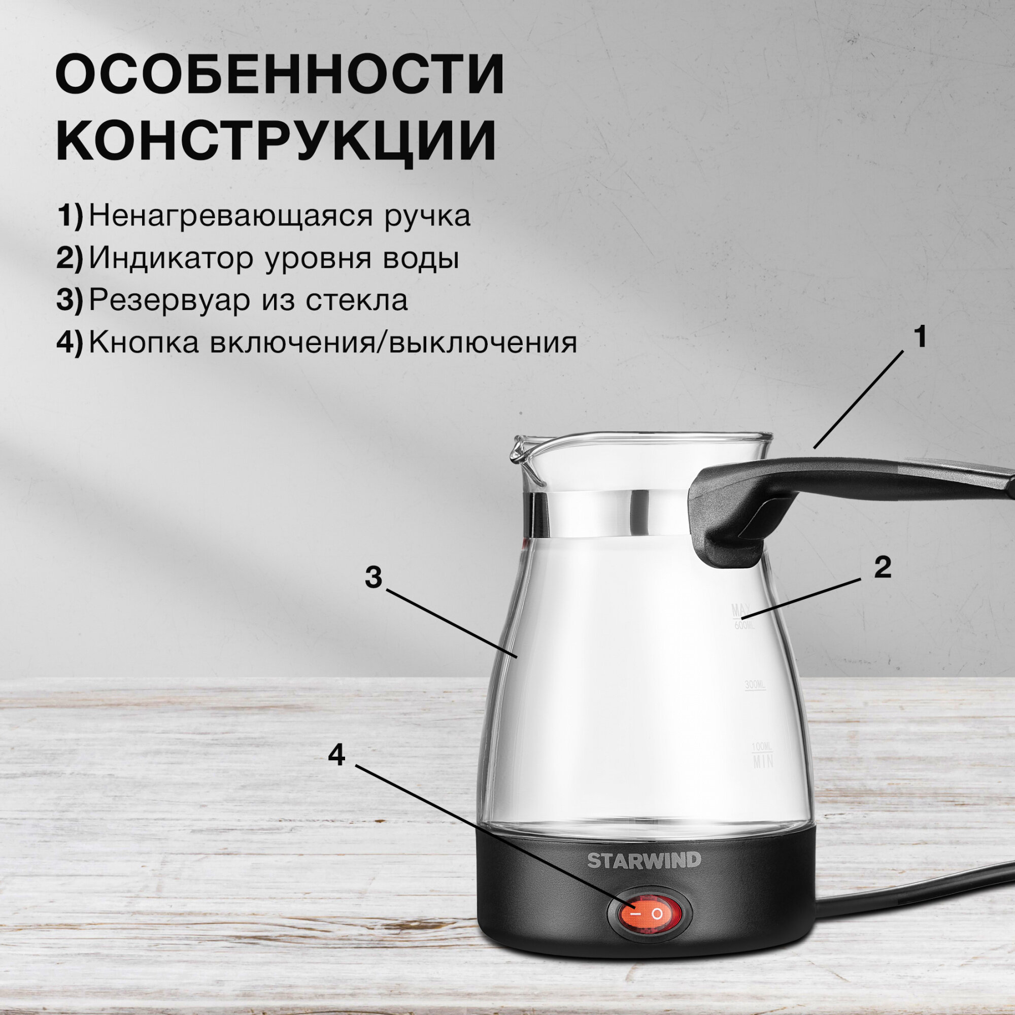 Кофеварка STARWIND STG6051, Электрическая турка, черный