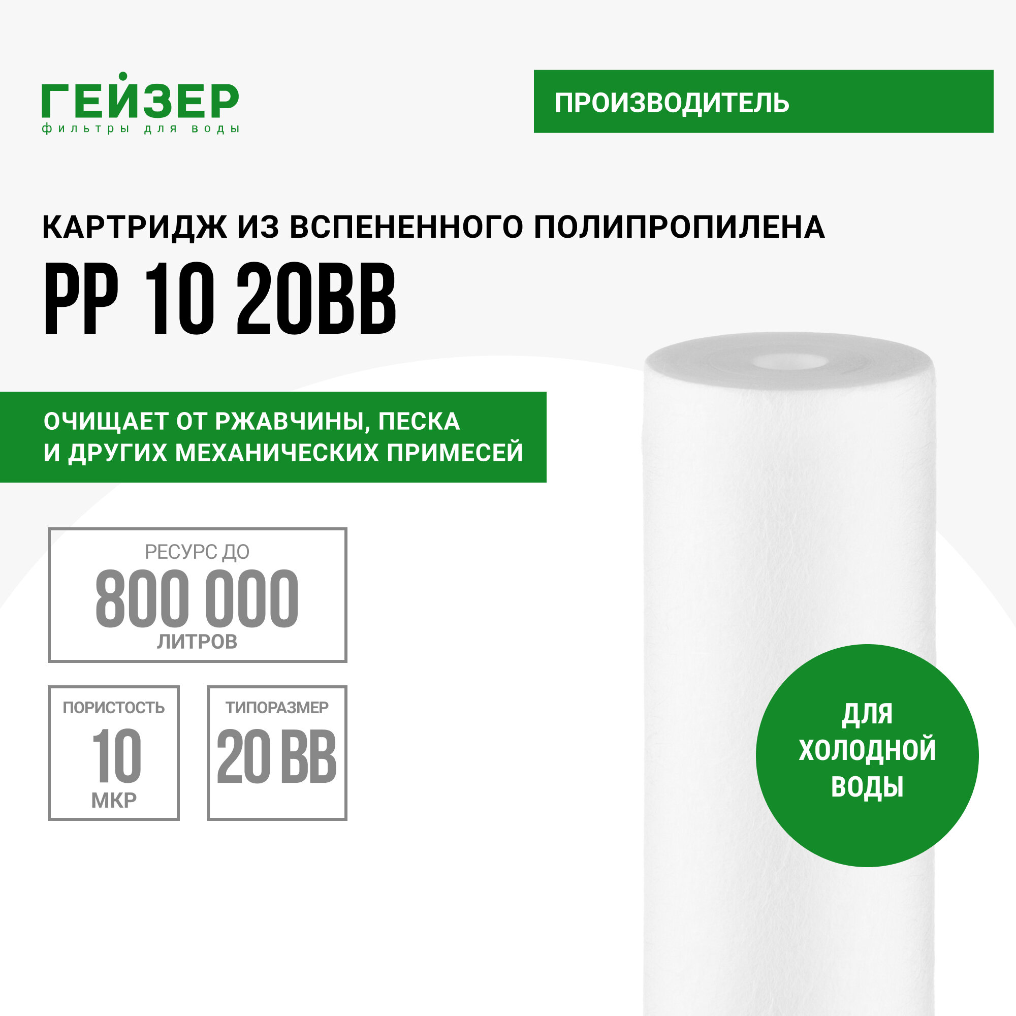 Купить Картридж механический Гейзер PP 10 - 20BB, для холодной воды, очистка воды от нерастворимых примесей, 28077