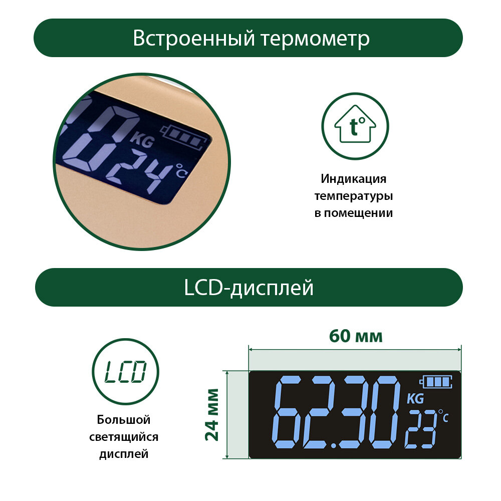 Весы умные, управление со смартфона, t°, 25х21