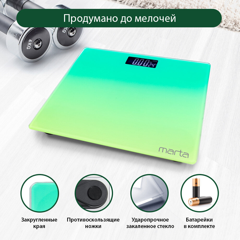 Весы напольные умные MARTA MT-SC1691 бирюзово-голубой