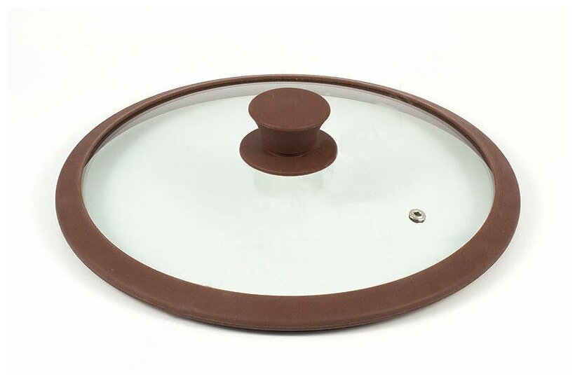 Крышка TimA стеклянная с силиконовым ободком, д.22 см, с пароотводом, коричневая