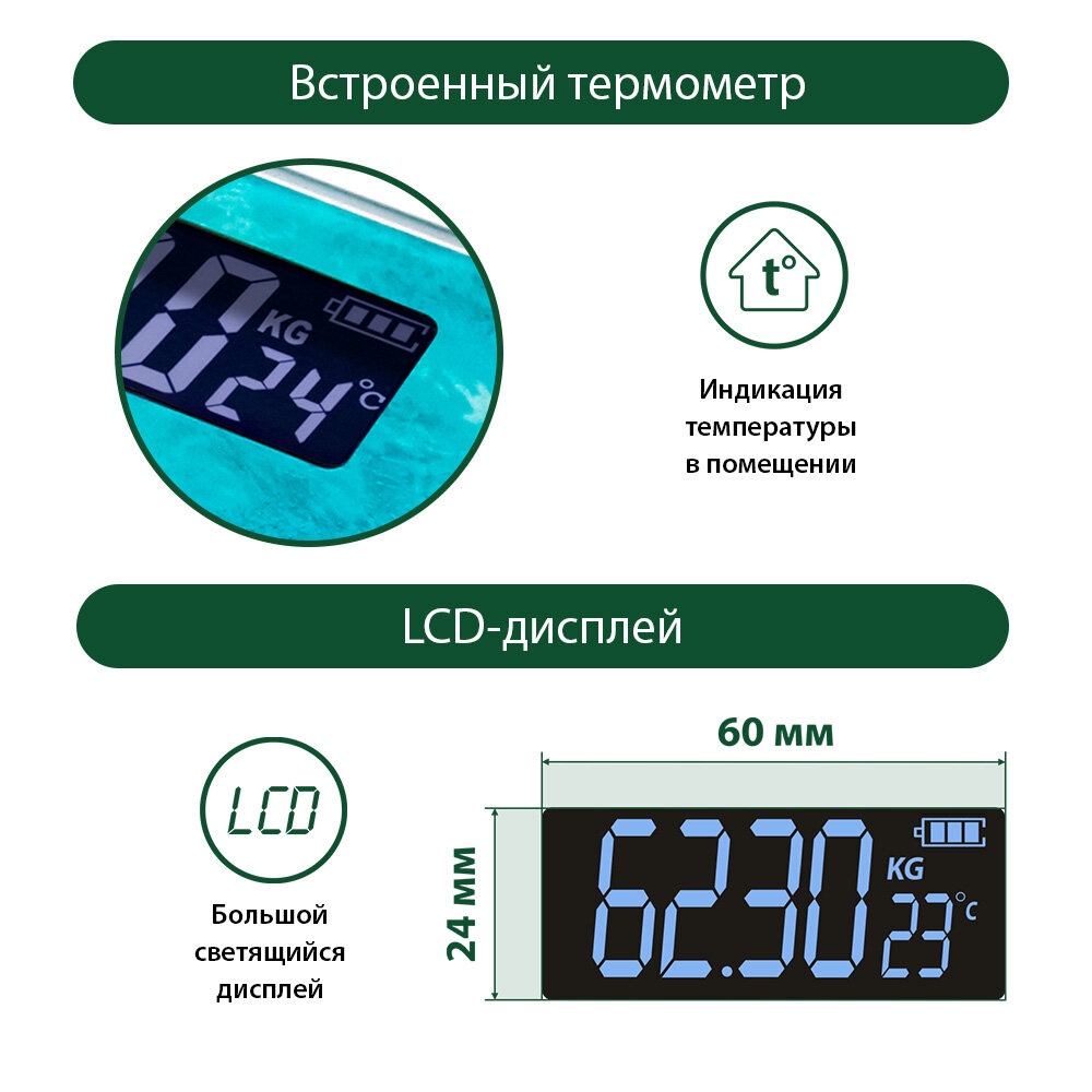 | Дополнительные функции | определение доли жировой ткани / определение доли мышечной ткани / определение доли воды / определение доли костной ткани / расчет ИМТ (BMI) / постановка цели / память |