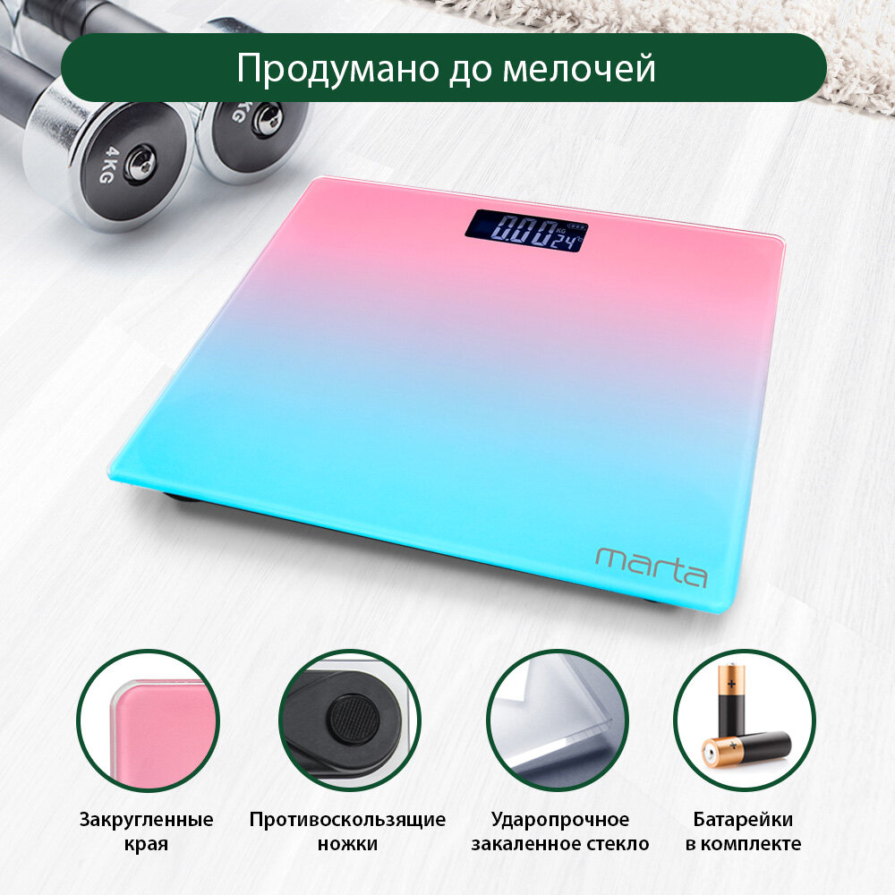 СохранитьВесы напольные умные MARTA MT-SC1691 розово-голубой интересное: