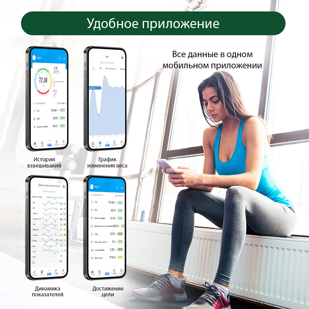 Весы умные электронные,управление со смартфона, с t°, 25х21