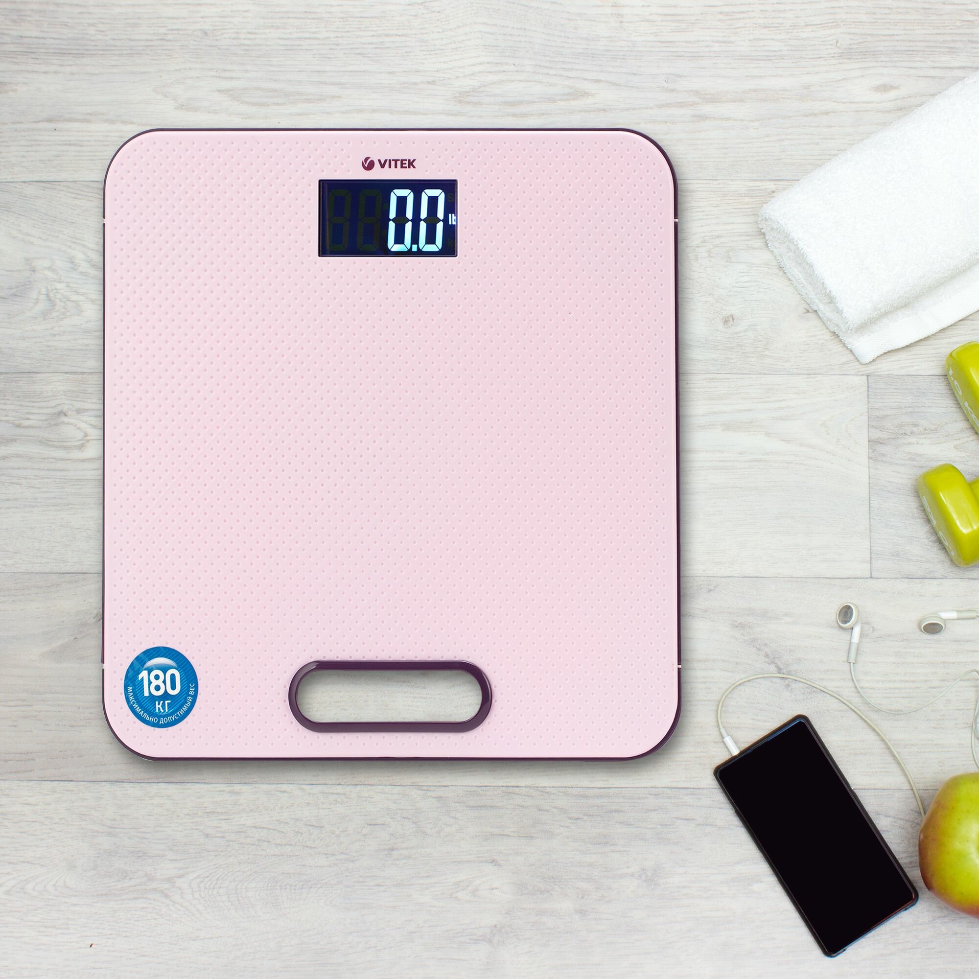 Купить Весы напольные электронные Vitek VT-1968 (P), розовый, нагрузка до 180 кг, жк-дисплеем