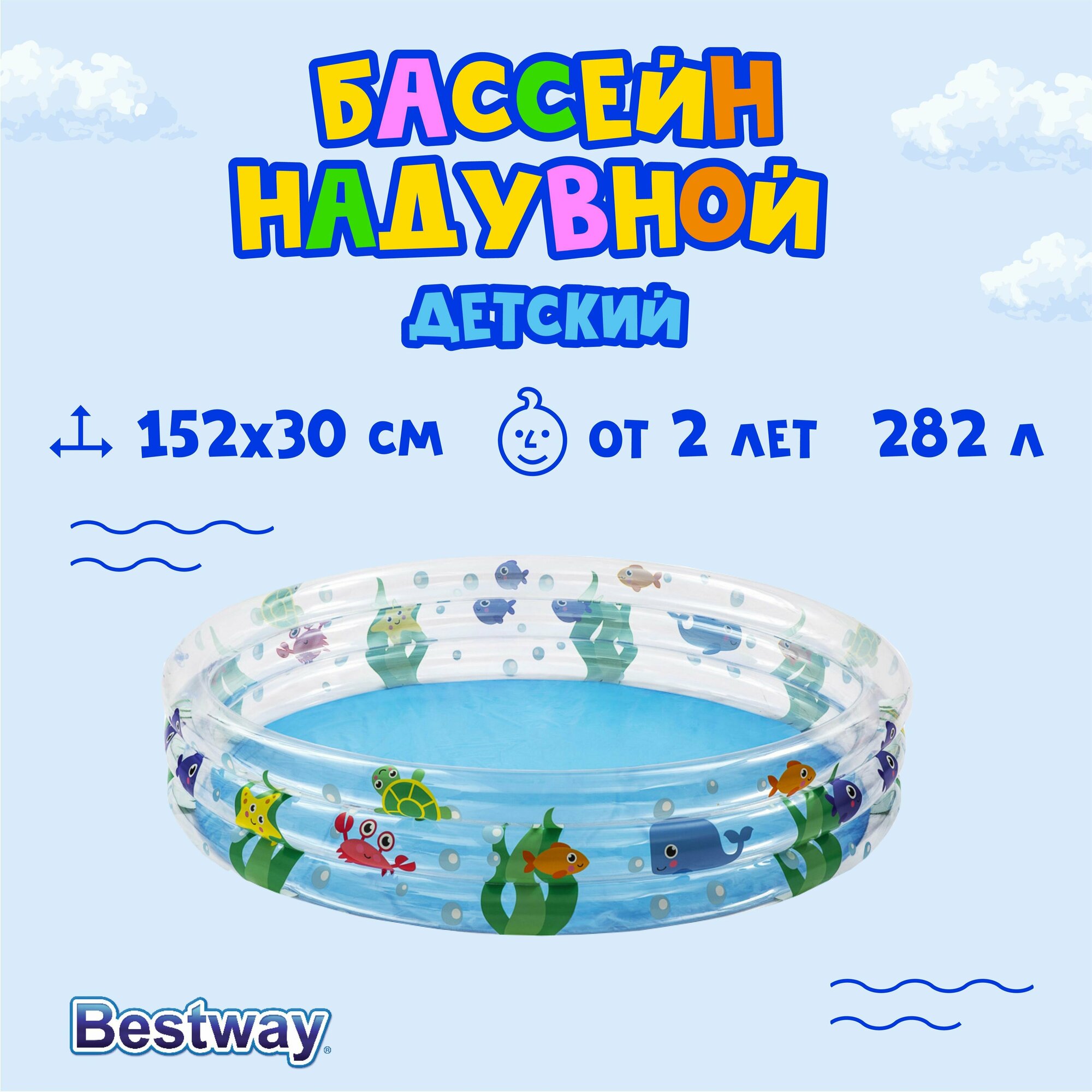 Детский надувной бассейн BESTWAY "Подводный мир" 152x30см, объем 282л, глубина 30см