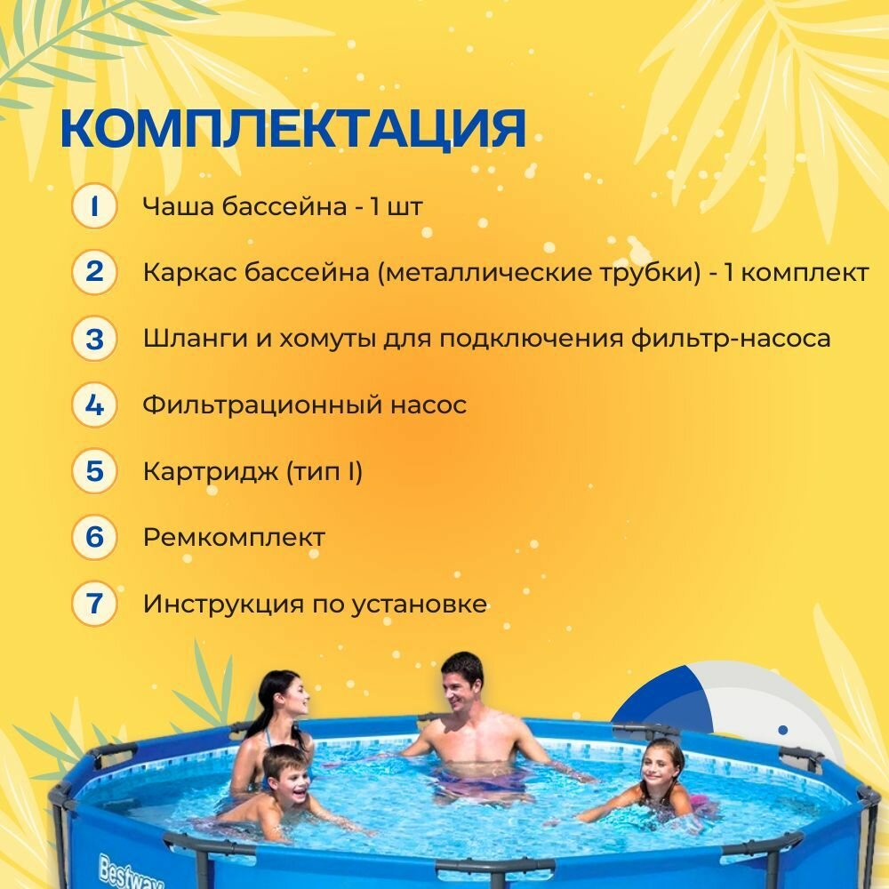 Купить 56408 Каркасный бассейн круглый BestWay, 305х76см, фильтр-насос картр 1249 л/ч