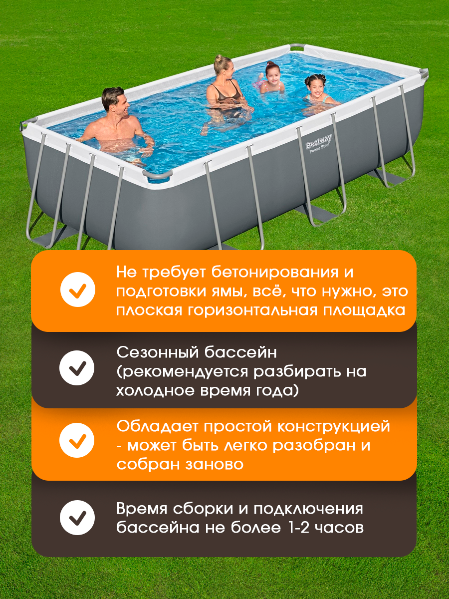 СохранитьБассейн каркасный Power Steel Bestway 404x201x100см, 6478л (в комплекте фильтр-насос, лестница, дозатор и рем. комплект) интересное: