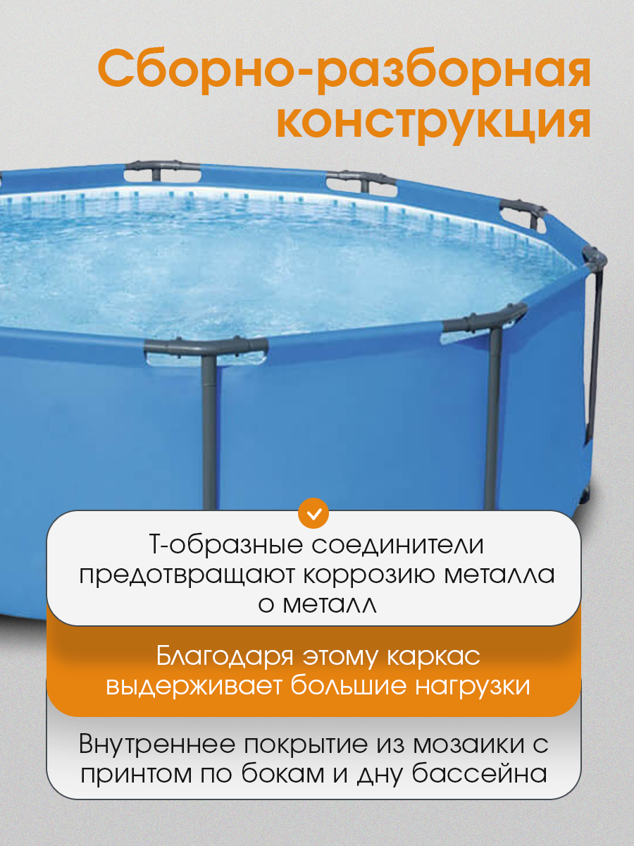 Круглый каркасный бассейн Bestway Steel Pro 305х76см, 4678л / бассейн детский / для взрослых / для дачи / большой бассейн