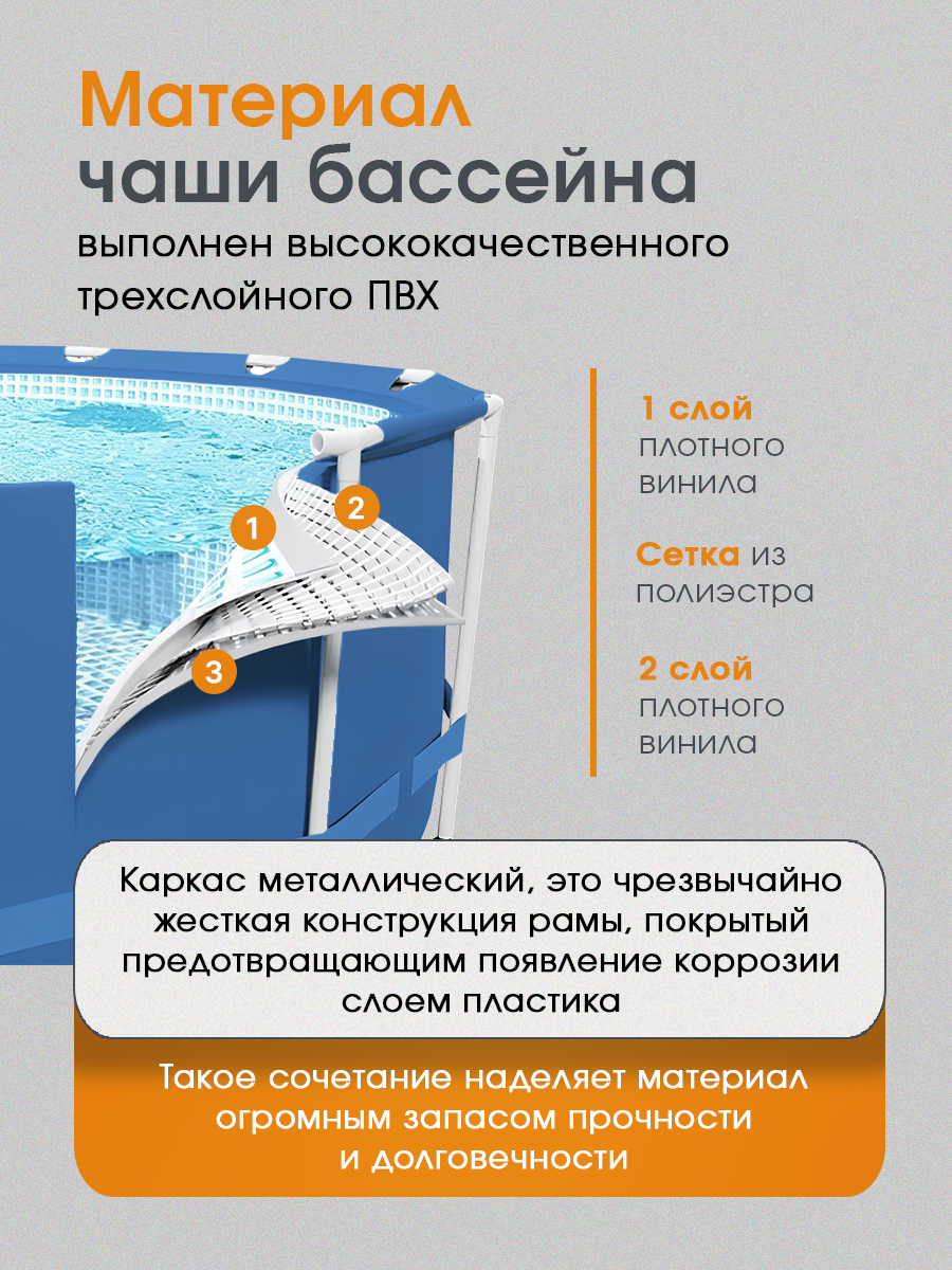 Круглый каркасный бассейн Bestway Steel Pro 305х76см, 4678л / бассейн детский / для взрослых / для дачи / большой бассейн