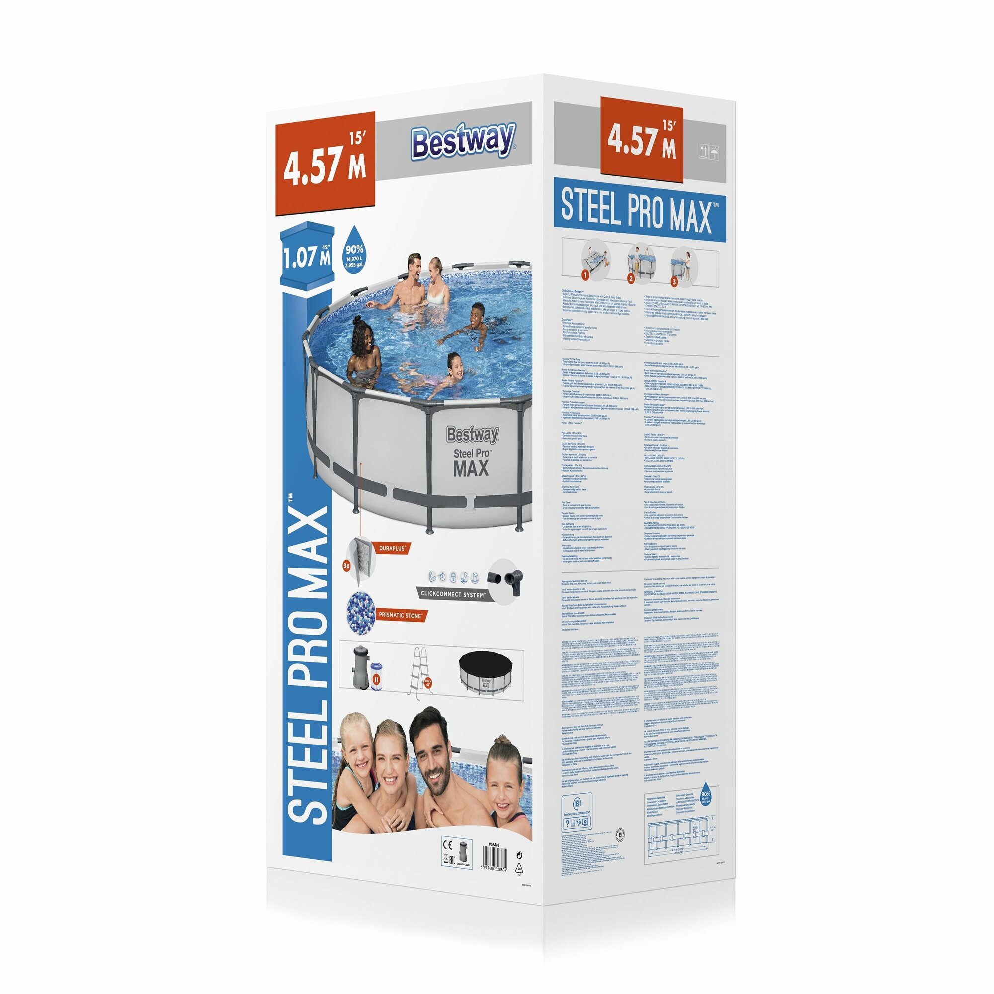 Купить Каркасный бассейн BESTWAY STEEL PRO MAX 457х107см, 14970л, фил. насос 3028 л. ч, лестница, тент