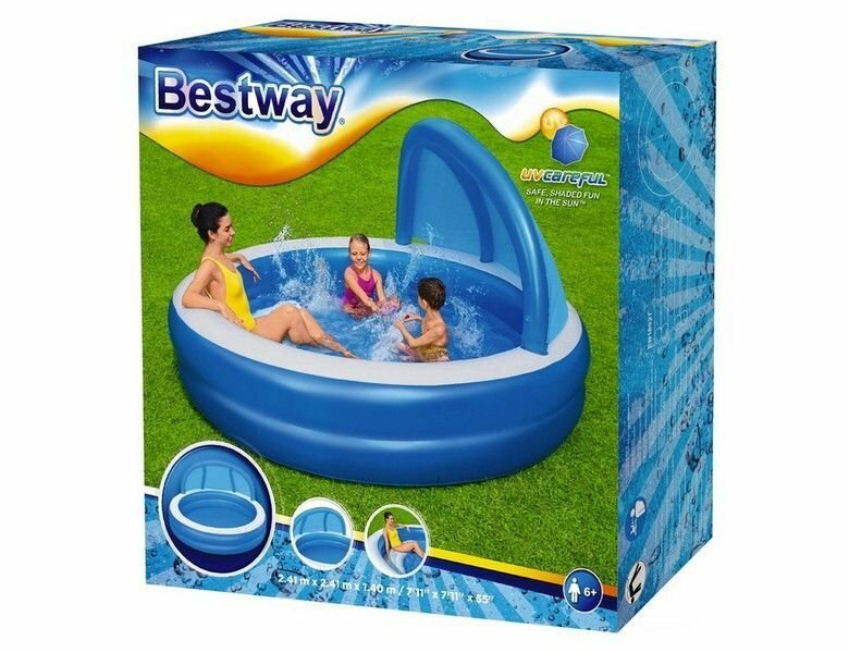 Бассейн надувной Bestway "Сортер+" детский 120х117х46 см, на 45 л, возраст 1+, материал ПВХ упругий борт + козырек с сортером, сборка за 10-15 мин, для дачи, пляжа / 1 шт