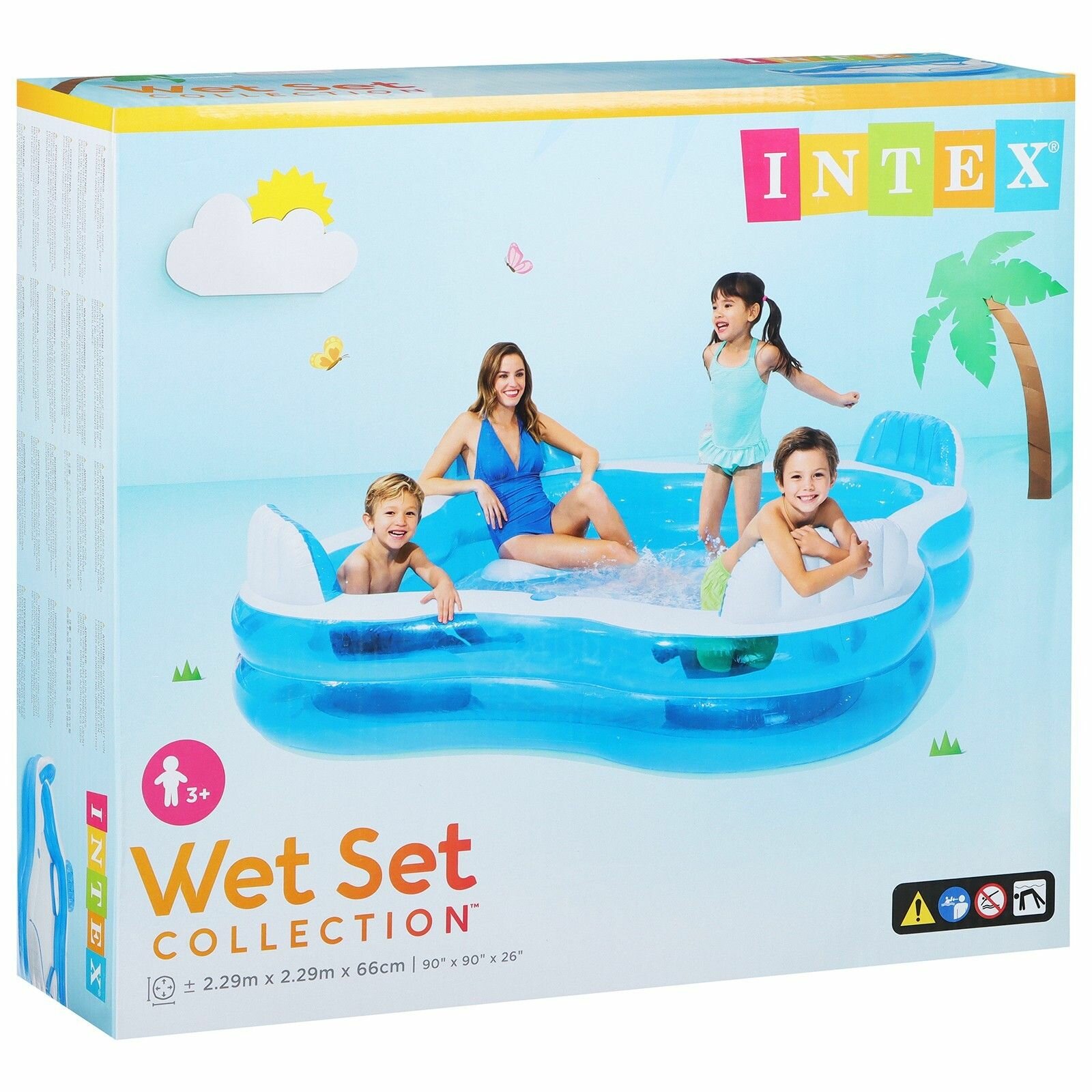 INTEX уценка Бассейн надувной "Семейный" с 4-мя сиденьями 229х229х66 см, от 3 лет, 56475NP