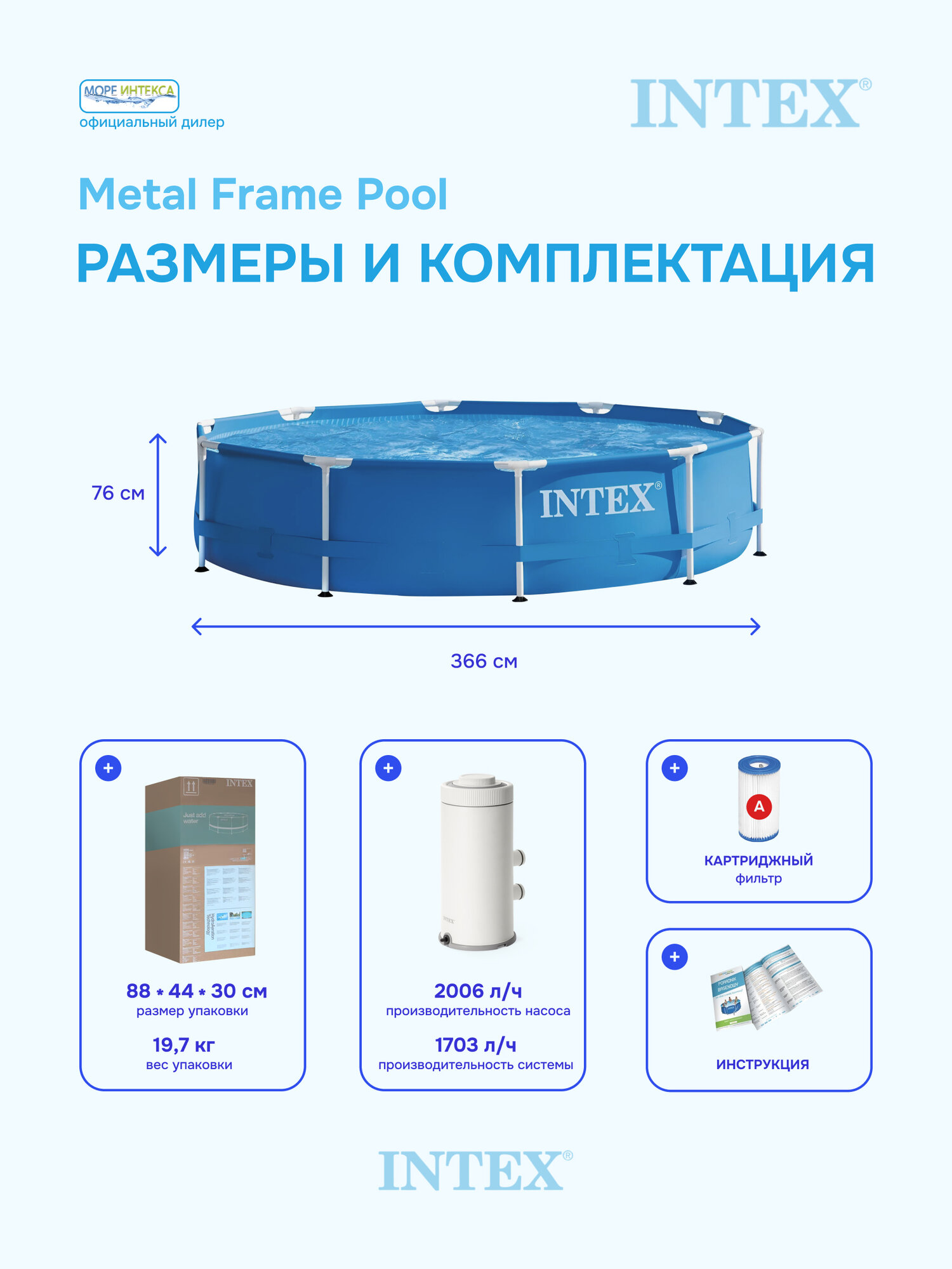 Ниже Вы можете прочитать отзывы на Бассейн каркасный Metal Frame , круглый, 366 х 76 см, фильтр-насос 2000л/час, 28212, ознакомится с подробными характеристиками, посмотреть интересные обзоры и фотографии на Бассейн каркасный Metal Frame , круглый, 366 х 76 см, фильтр-насос 2000л/час, 28212.