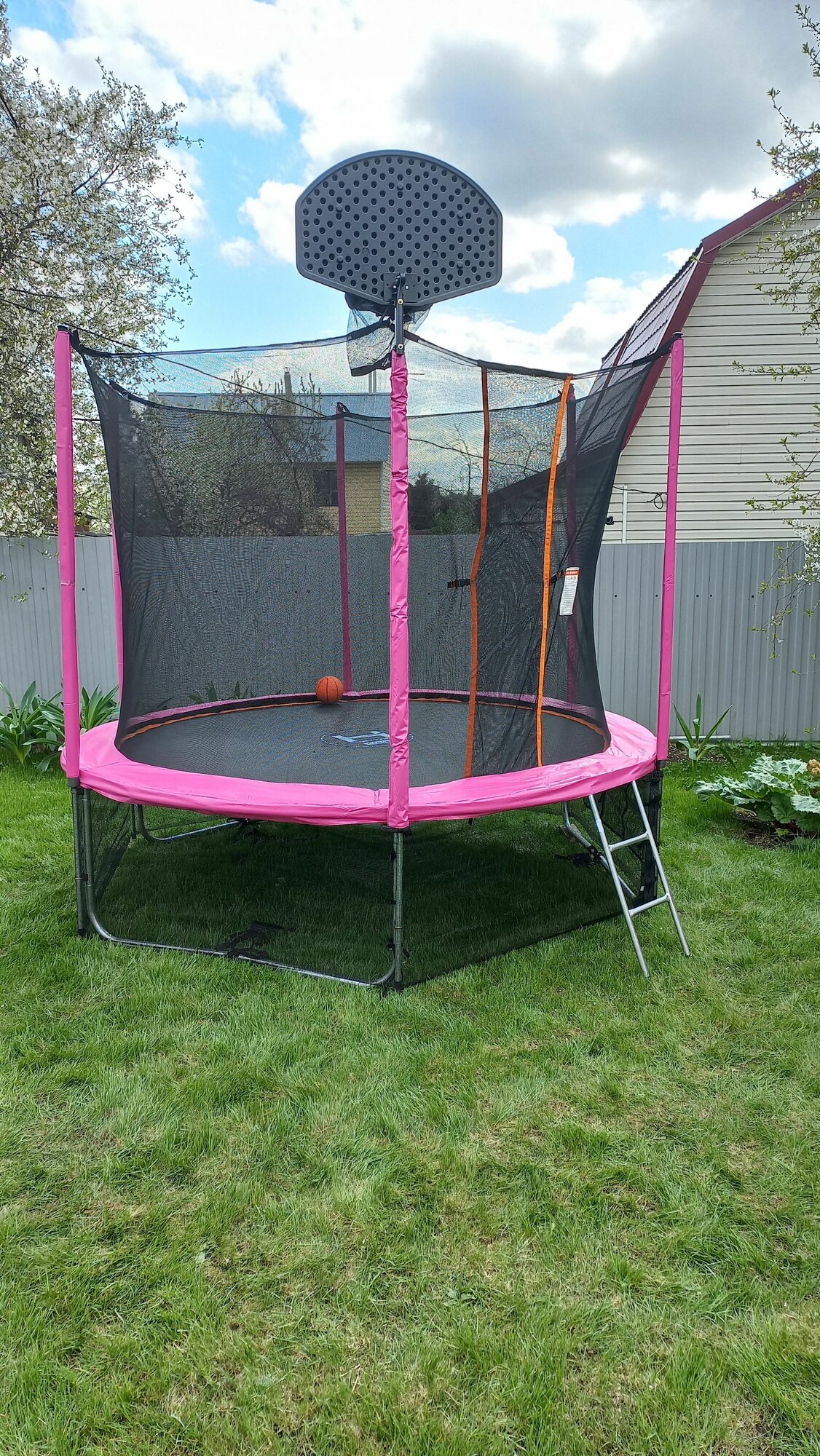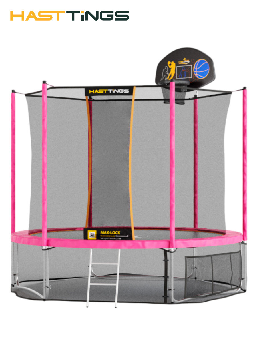 Батут детский уличный с защитной сеткой 305 см Hasttings Classic Game Pink с баскетбольным кольцом / каркасный для детей интересное:
