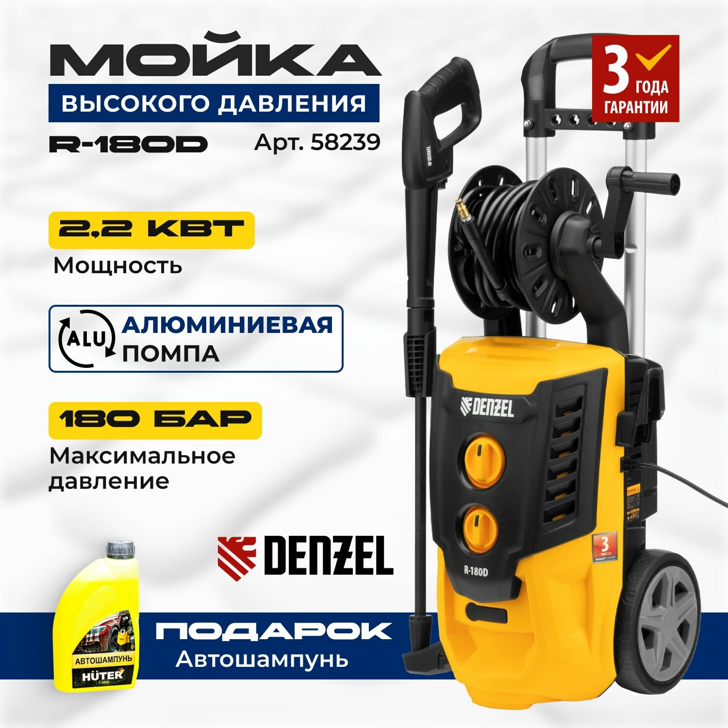 Купить Моечная машина (мойка) высокого давления DENZEL R-180D, 2200 Вт, 180 бар, 7 л/мин 58239