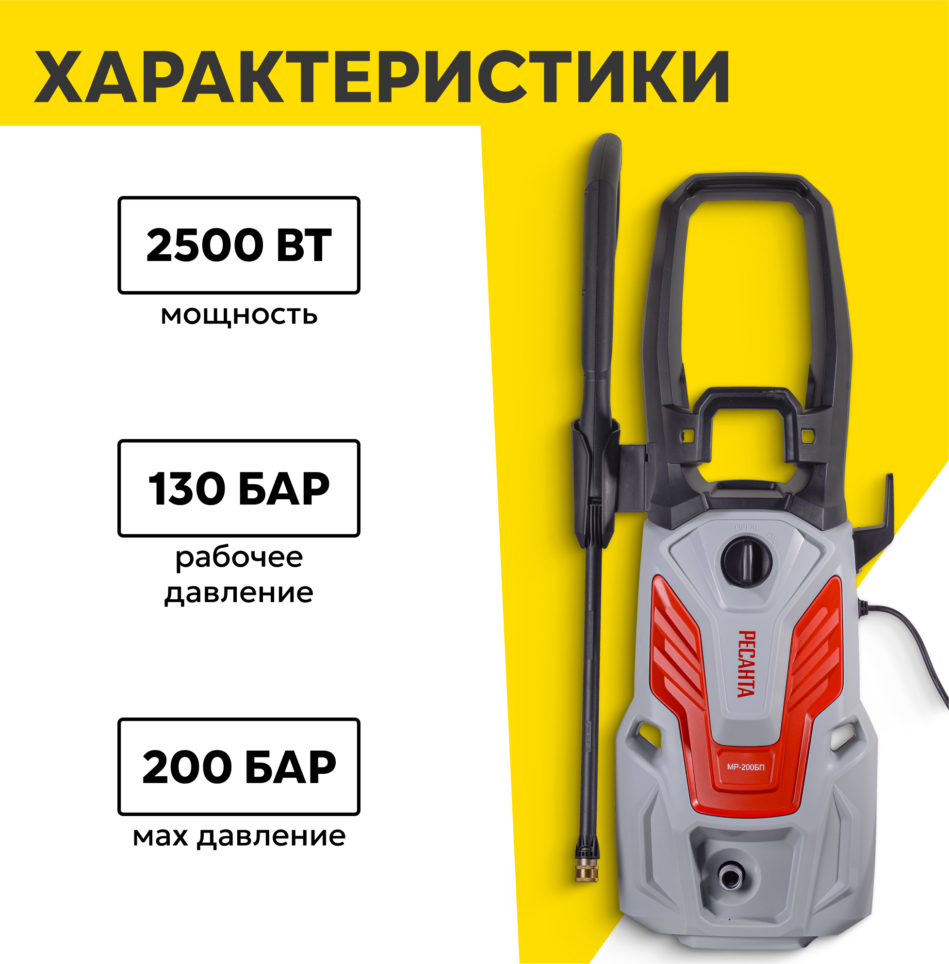 Мойка высокого давления РЕСАНТА МР-200БП, рабочее давление 130 бар, максимальное давление 200 бар