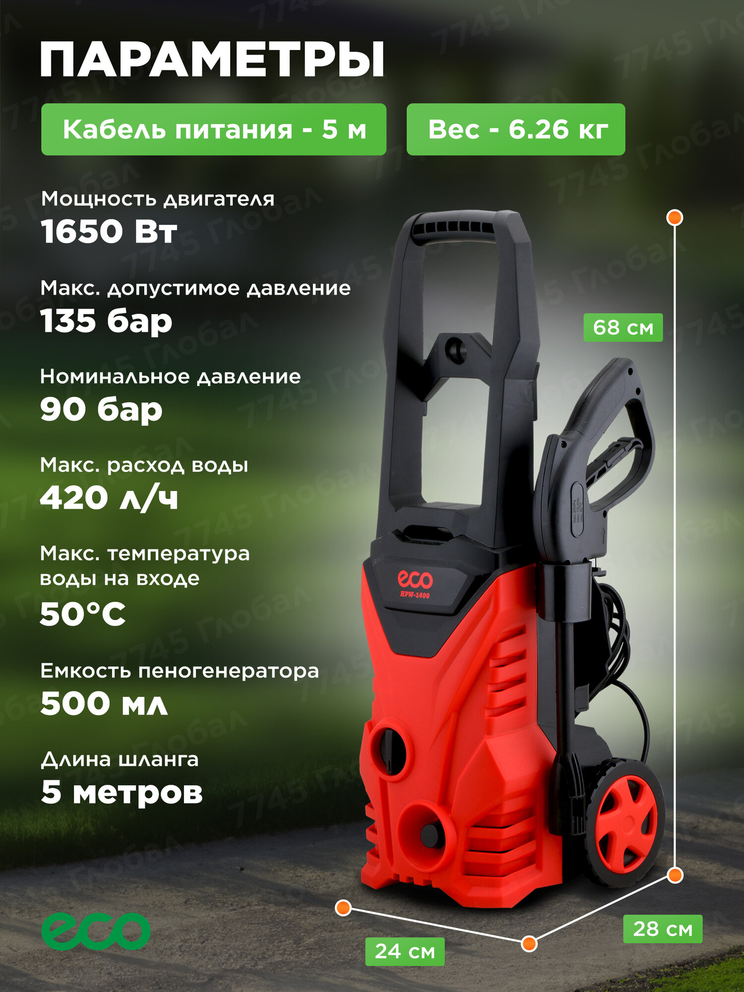 СохранитьОчиститель высокого давления для мытья ECO HPW-1400 мойка (EC4910-1) интересное: