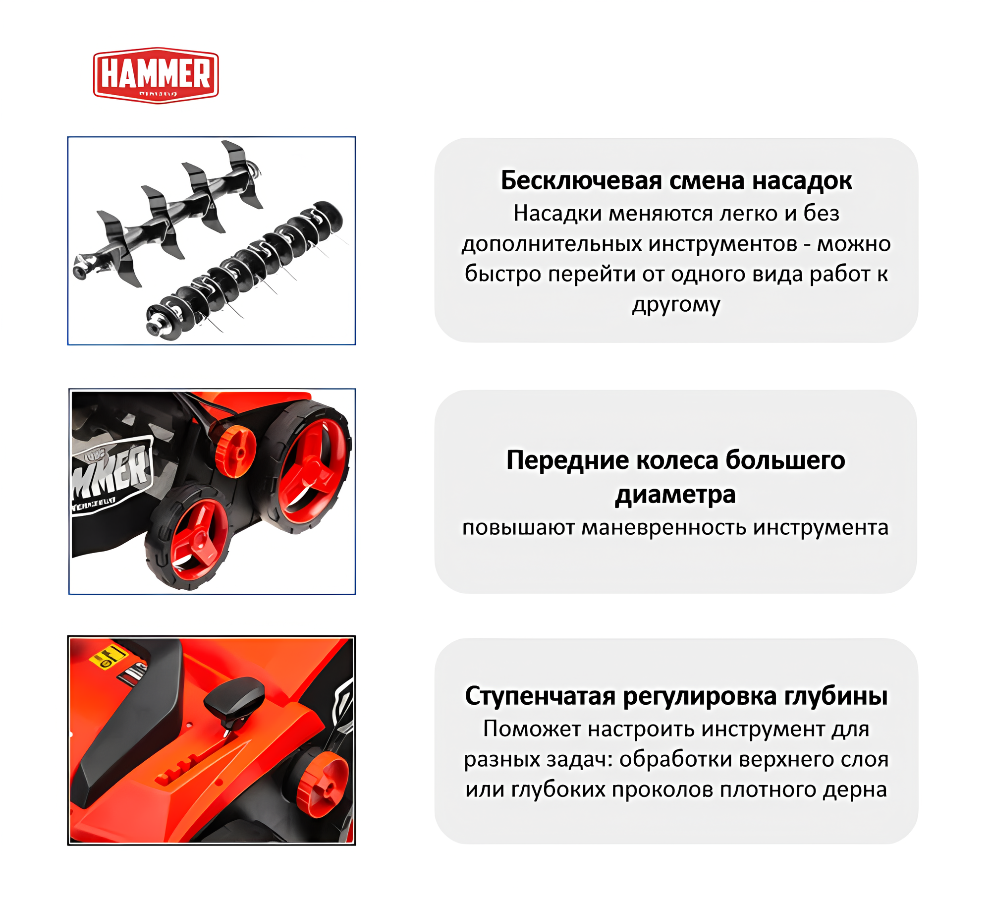 Скарификатор-аэратор электрический Hammer AS2000 для газона, 2000 Вт интересное: