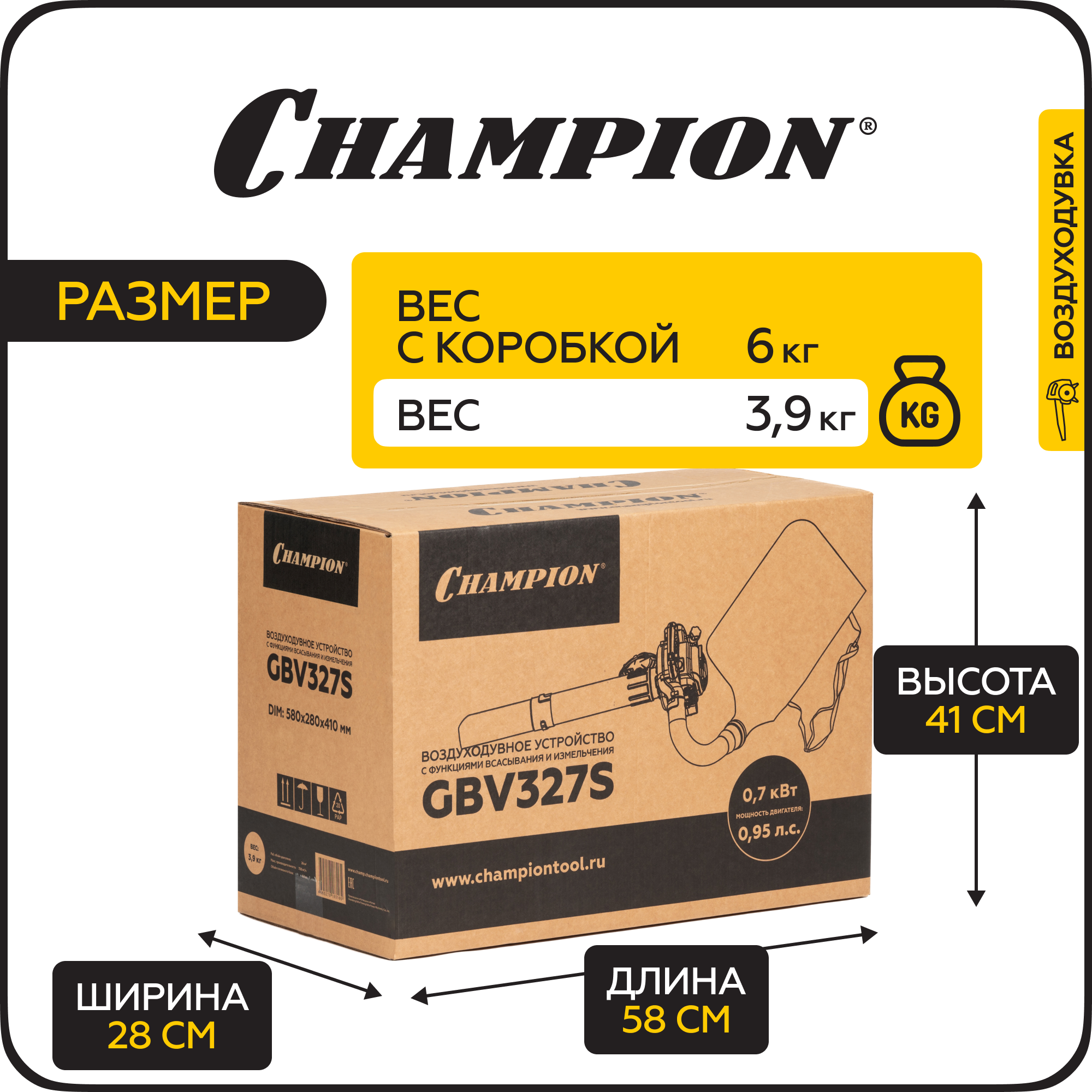 СохранитьВоздуходувка-измельчитель бензиновая CHAMPION GBV327S, 0,7 кВт, 720 м3/ч, 60 м/с, 5,75 кг интересное: