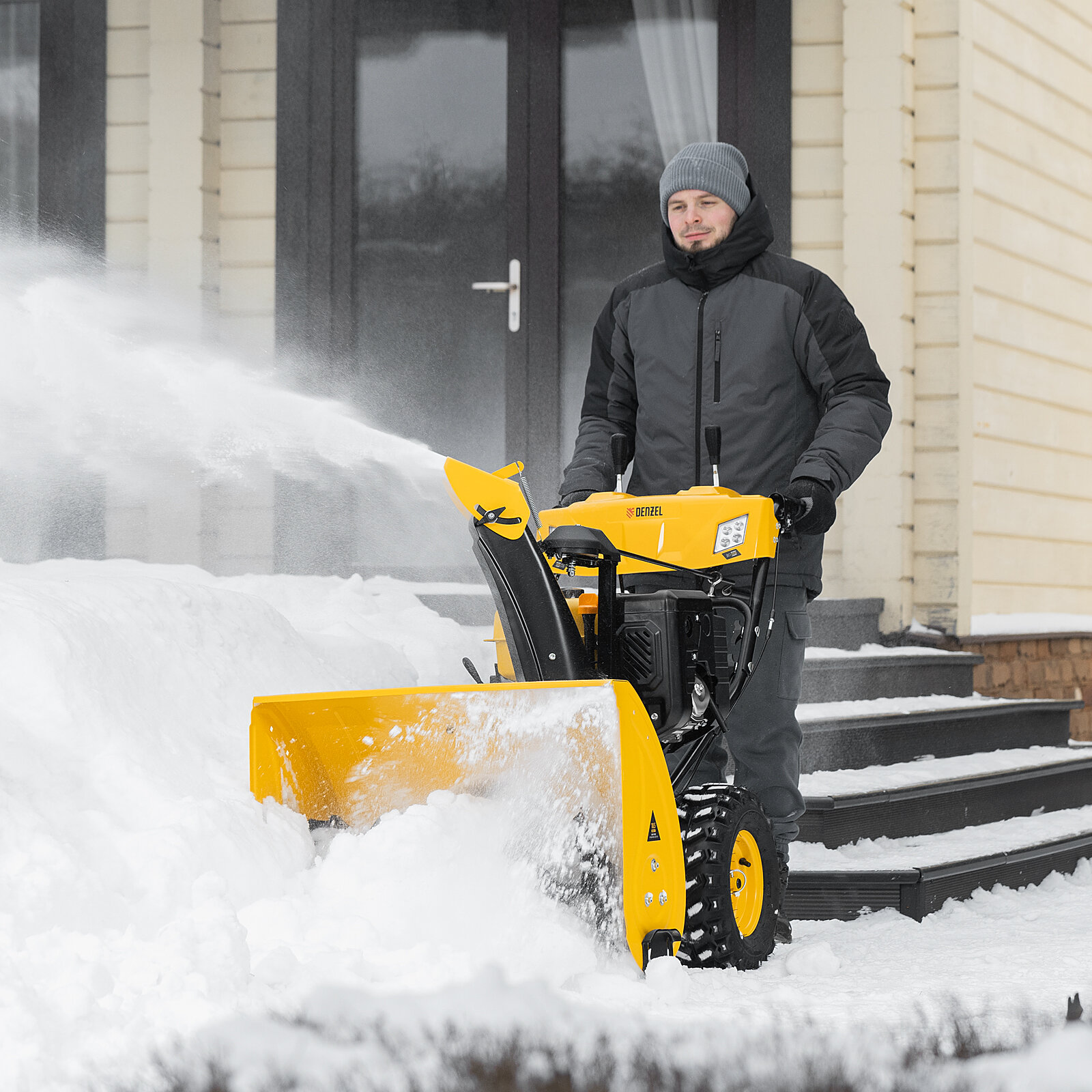 Бензиновая снегоуборочная машина SBM 610S PRO, 212 cc, электростартер, фара, обогрев Denzel
