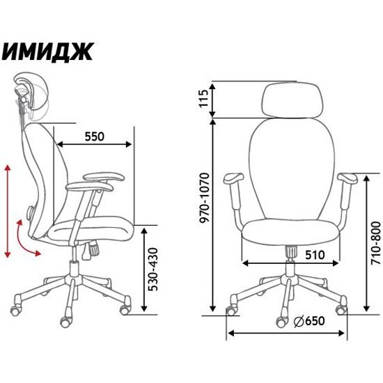 | Регулировка | высоты подлокотников / высоты сиденья / жесткости качания / наклона спинки / угла наклона подголовника |