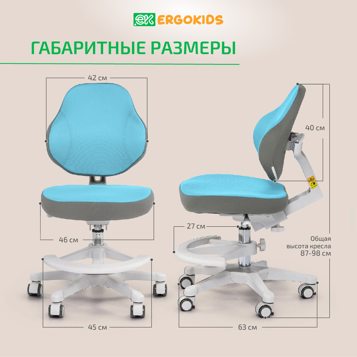 Растущее детское кресло для дома ErgoKids (Y-405) OR для обычных и растущих парт + подставка для ног