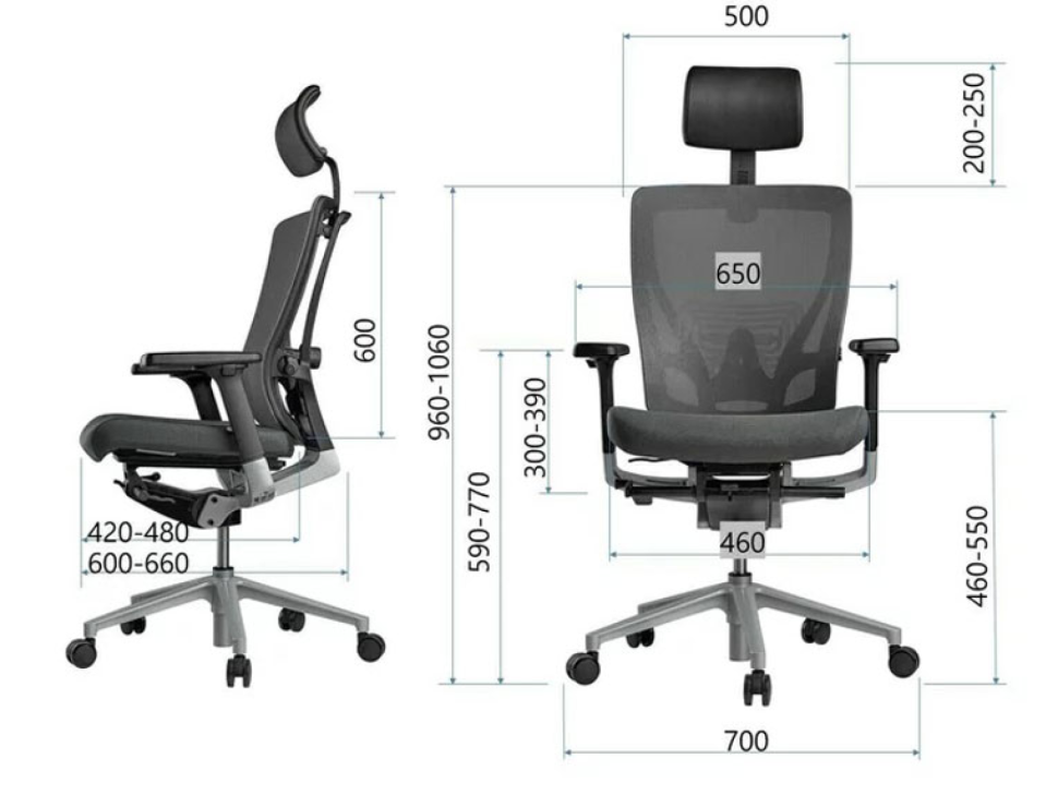Кресло эргономичное Schairs Tone-M01B - серое (каркас черный)