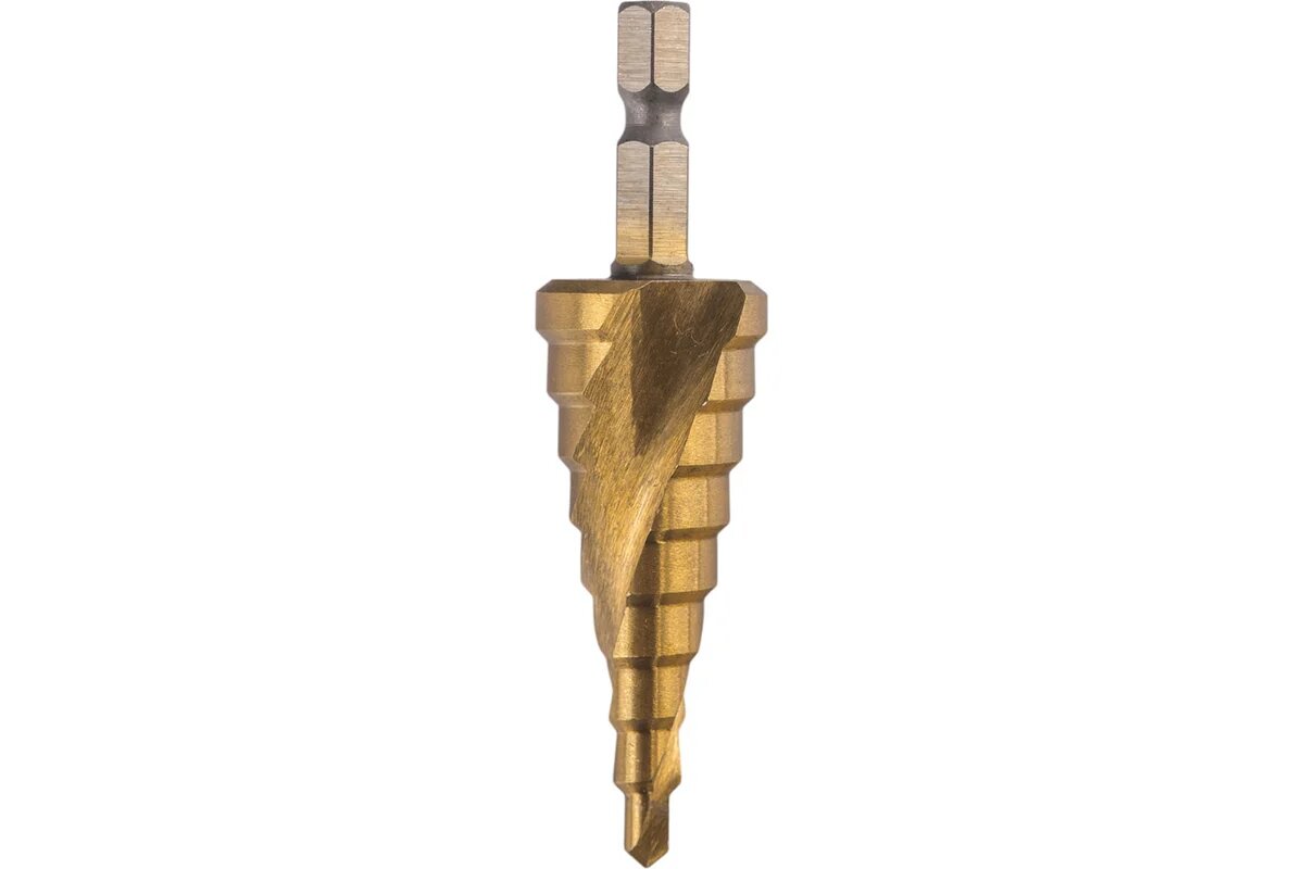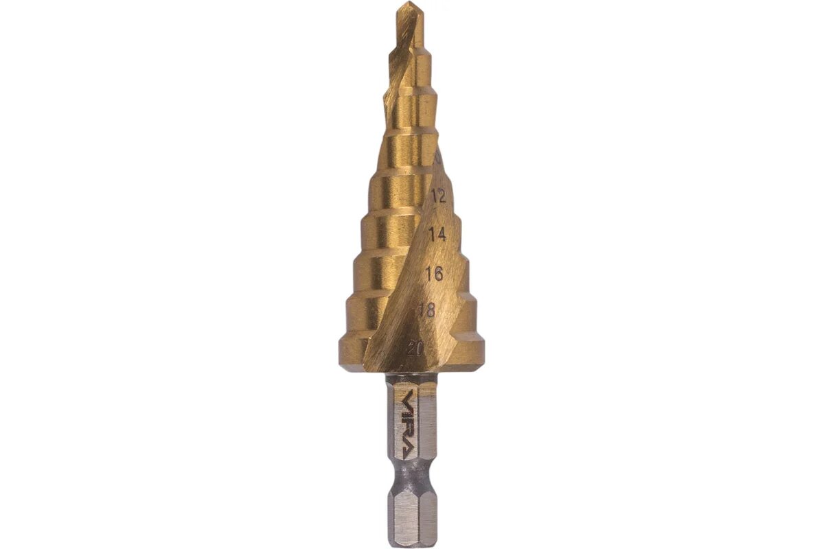 Купить VIRA Сверло ступенчатое спиральное TiN с шестигранным хвостовиком 4-20 мм 551421