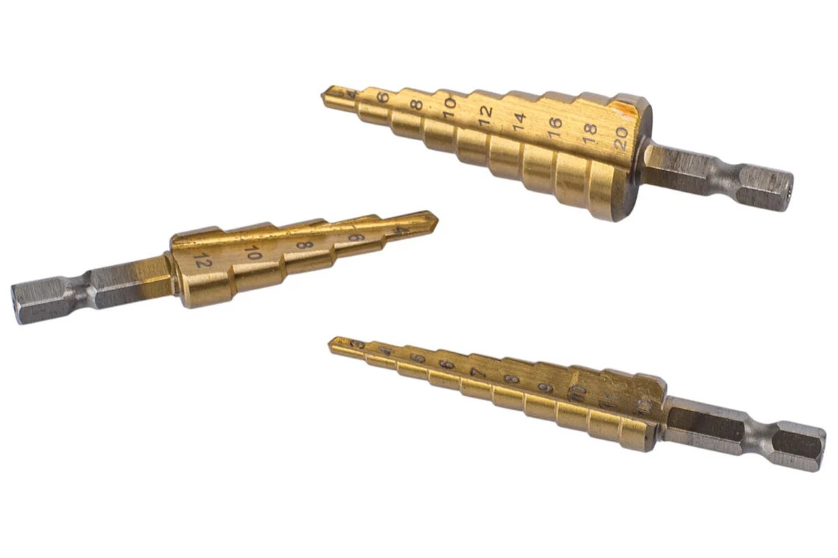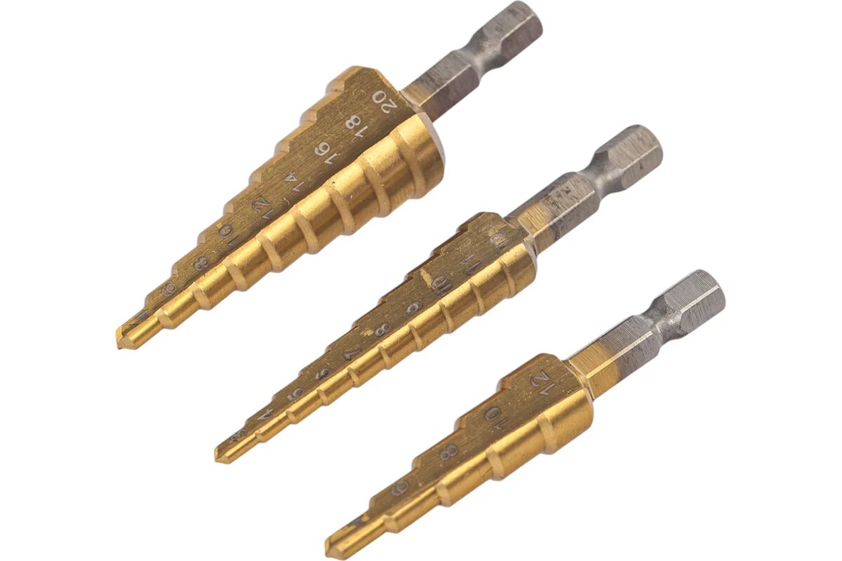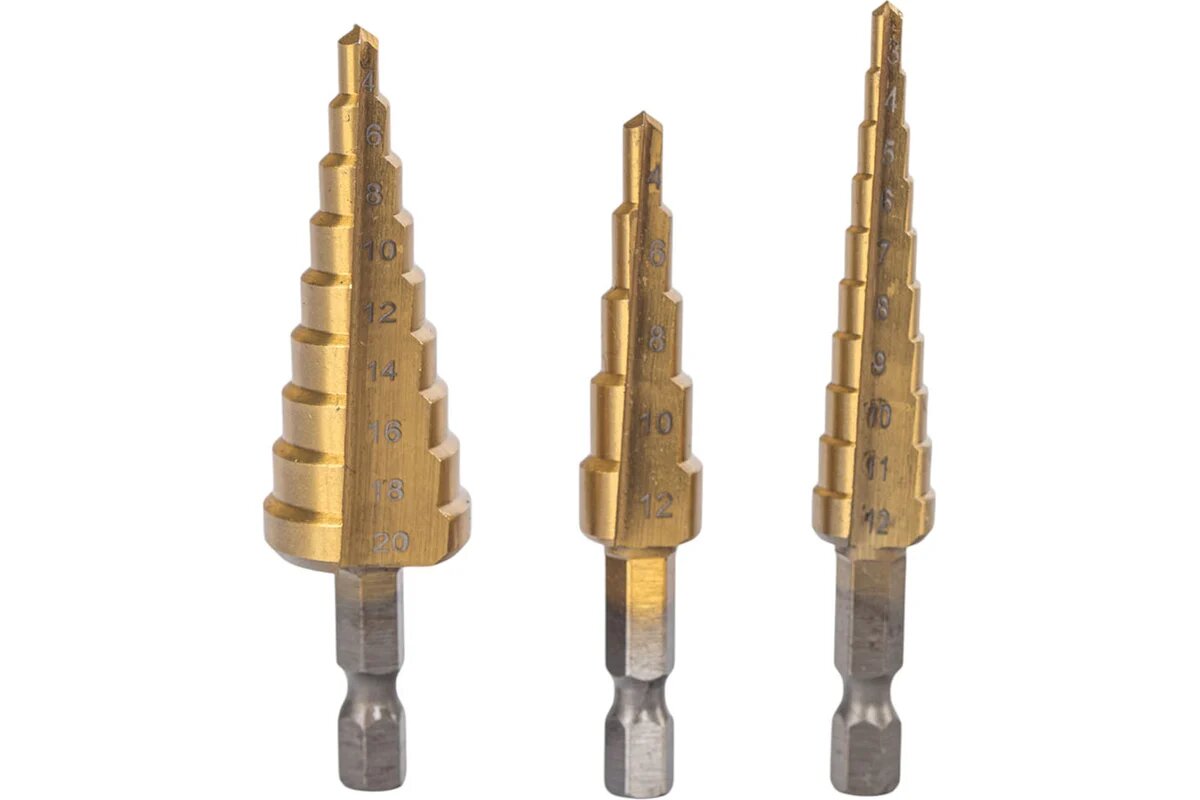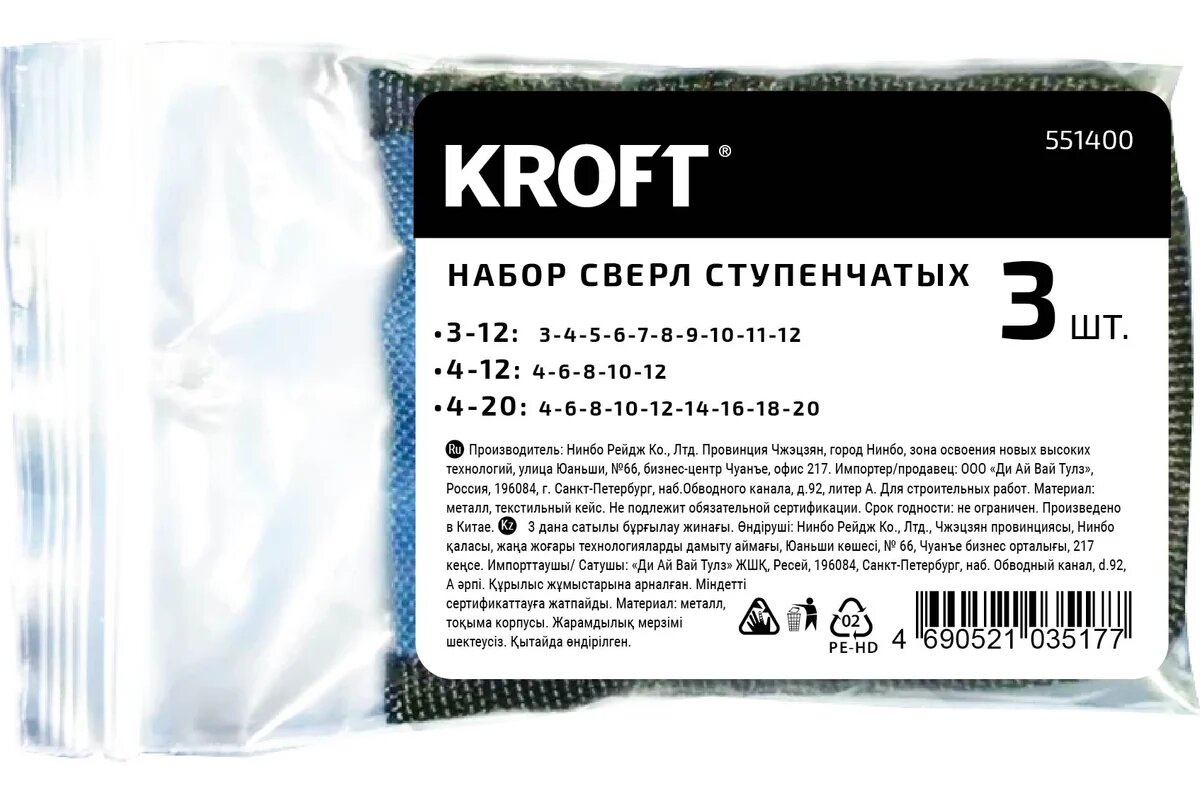 Купить KROFT Набор ступенчатых свёрл по металлу 3 шт 3-12 4-12 4-20 в чехле 551400