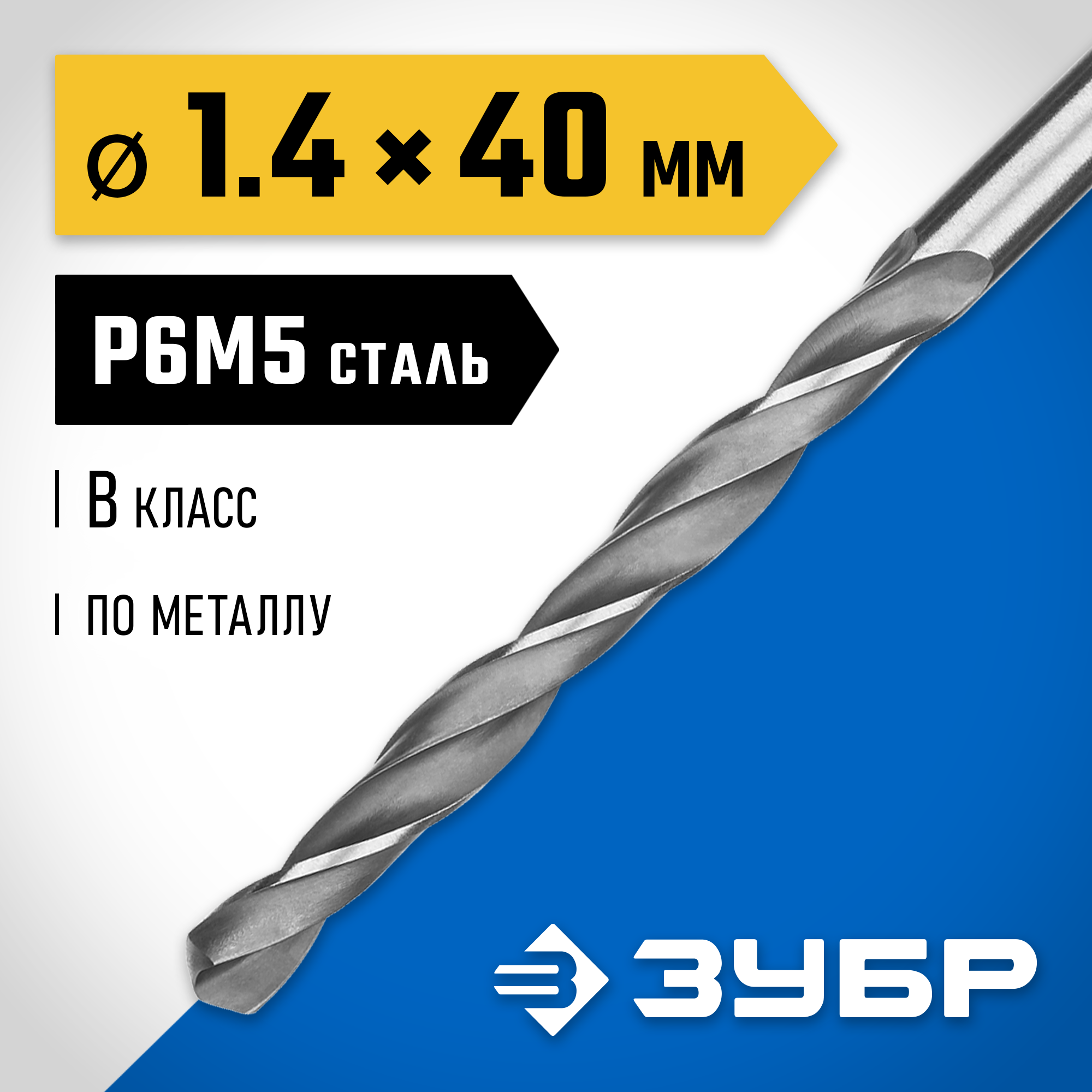 ЗУБР ПРОФ-в 1.4х40мм, Сверло по металлу, сталь Р6М5, класс В (29621-1.4)