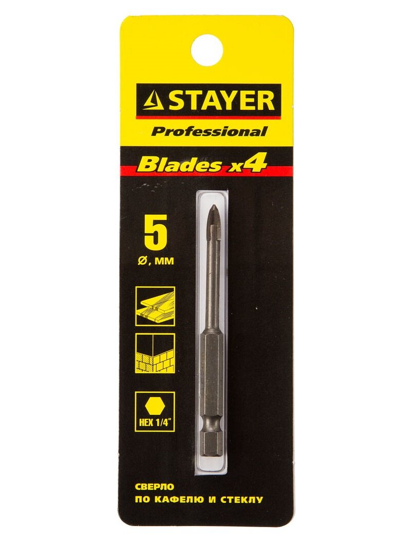 Купить Сверло по кафелю, керамике, стеклу, 5 мм. с 4-мя лезвиями 6-ти гранный STAYER PROFESSIONAL