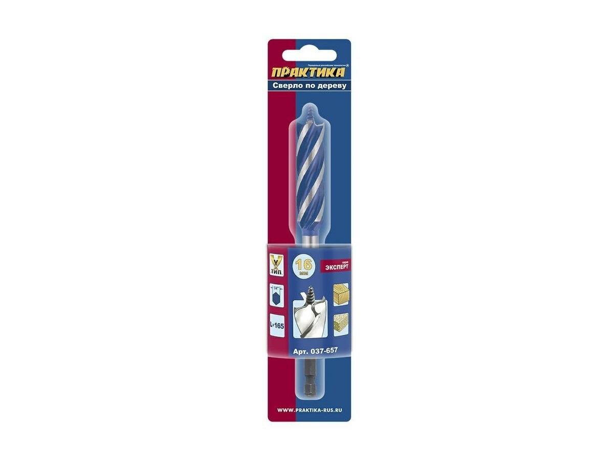 Сверло по дереву X-тип (16x165 мм; в блистере) ПРАКТИКА 037-657