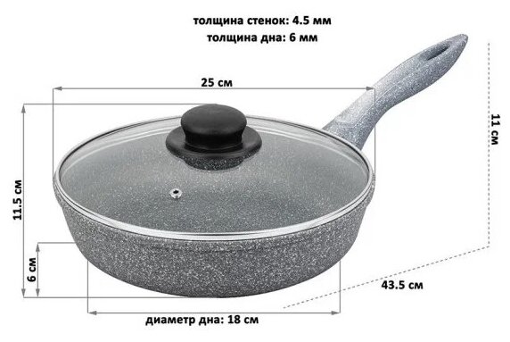 СохранитьСковорода глубокая 24 см Elan Gallery гармония вкуса Серый мрамор с крышкой D24, несъёмная ручка интересное: