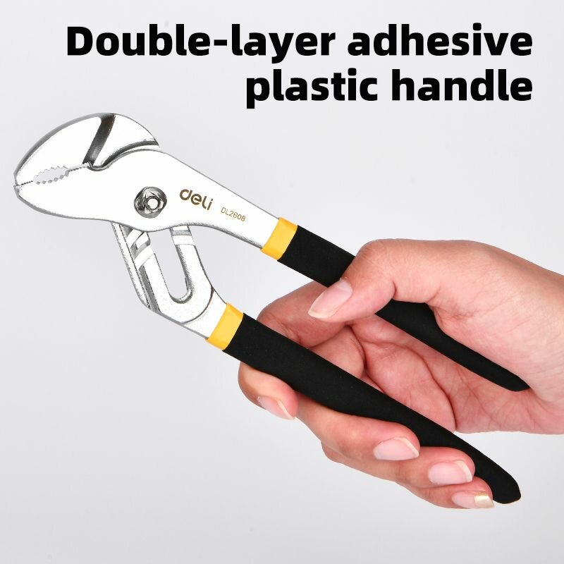 Купить Переставные клещи 200мм Deli DL2608 диапазон раскрытия 5-35мм, прорезиненная рукоять