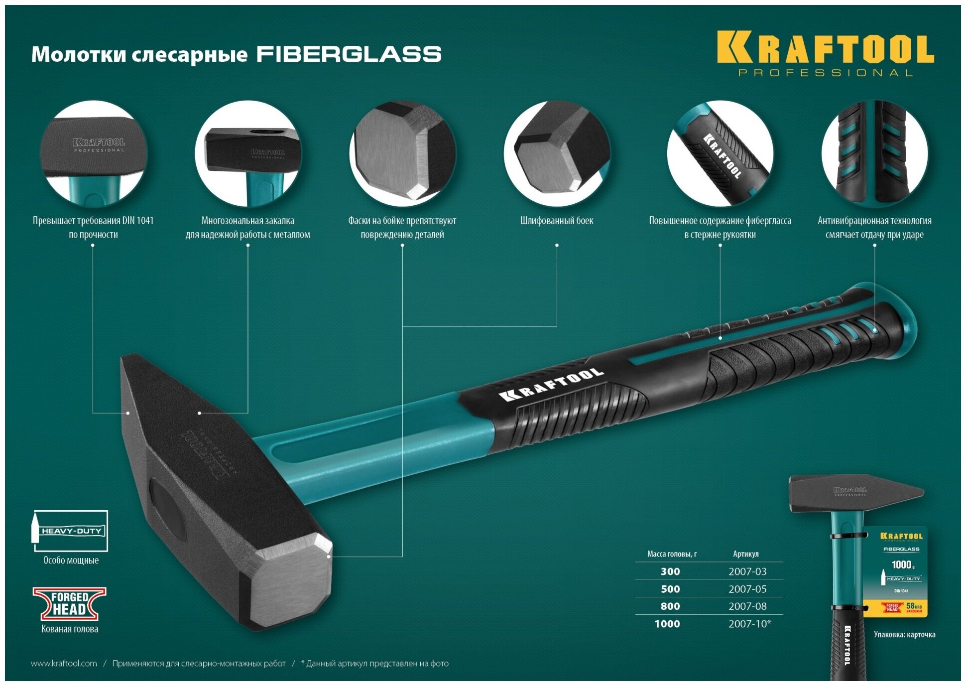 Купить Молоток слесарный с фиберглассовой рукояткой KRAFTOOL Fiberglass, 500 г 2007-05,
