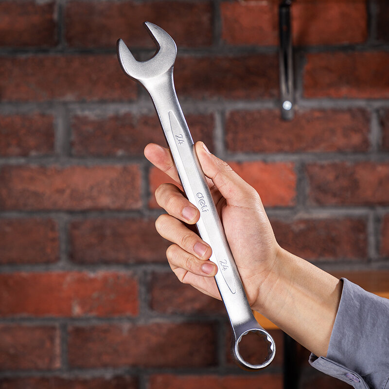 Ключи Deli Набор комбинированных гаечных ключей 14 шт Deli DL130014A (размеры 6,7,8,9,10,11,12,13 ,14,15,17,19,22,24 мм, матовая хромированн