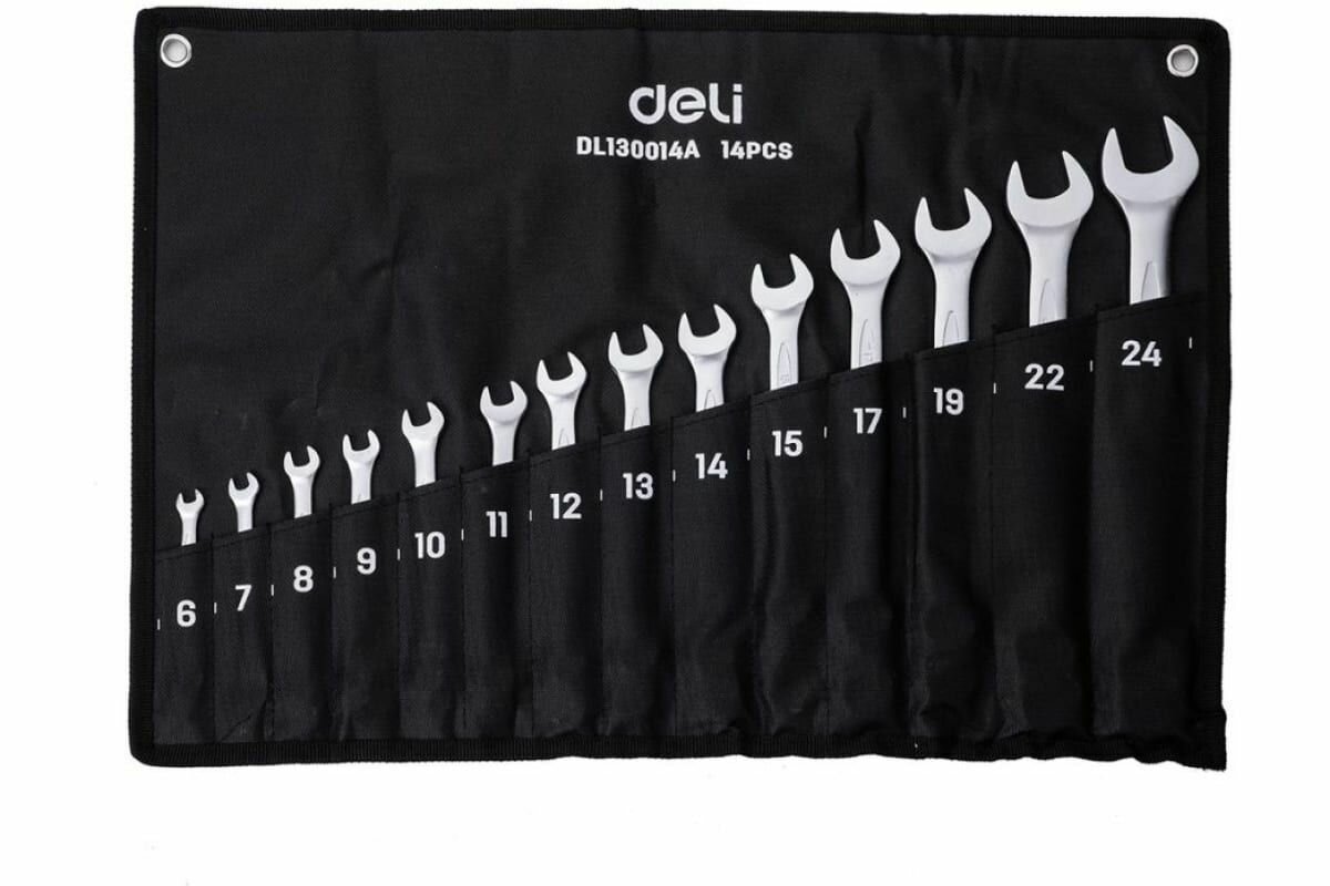 Набор комбинированных гаечных ключей 6-24мм/14шт DELI DL130014A (Сталь 40Cr, чехол из ткани oxford)