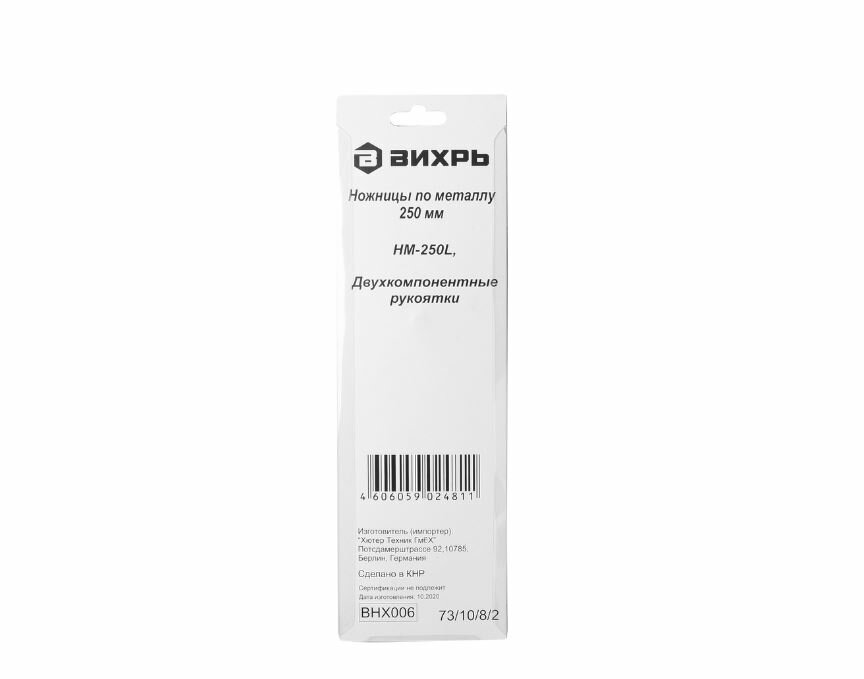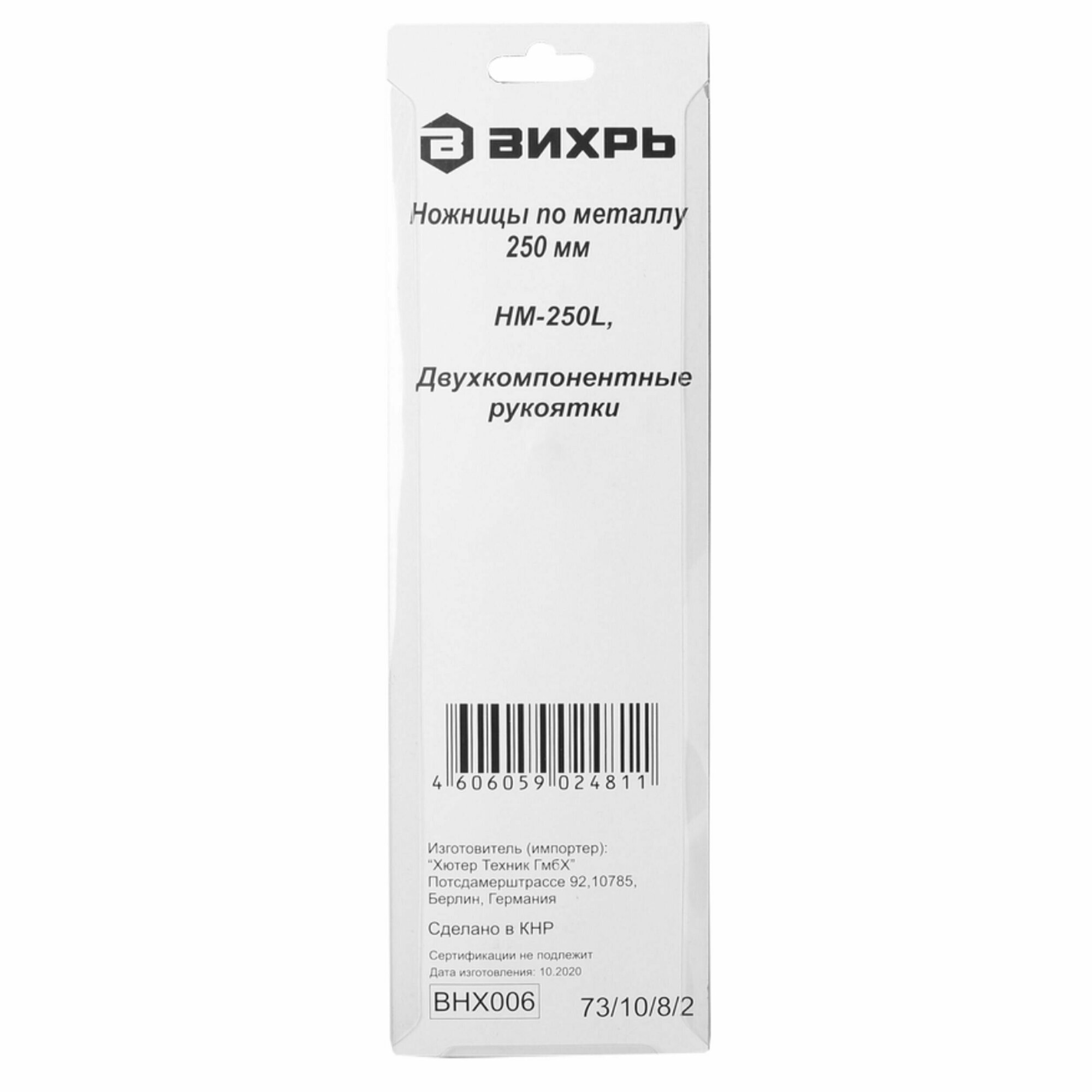 Ножницы по металлу 250мм НМ-250L двухкомпонентные рукоятки Вихрь 73/10/8/2