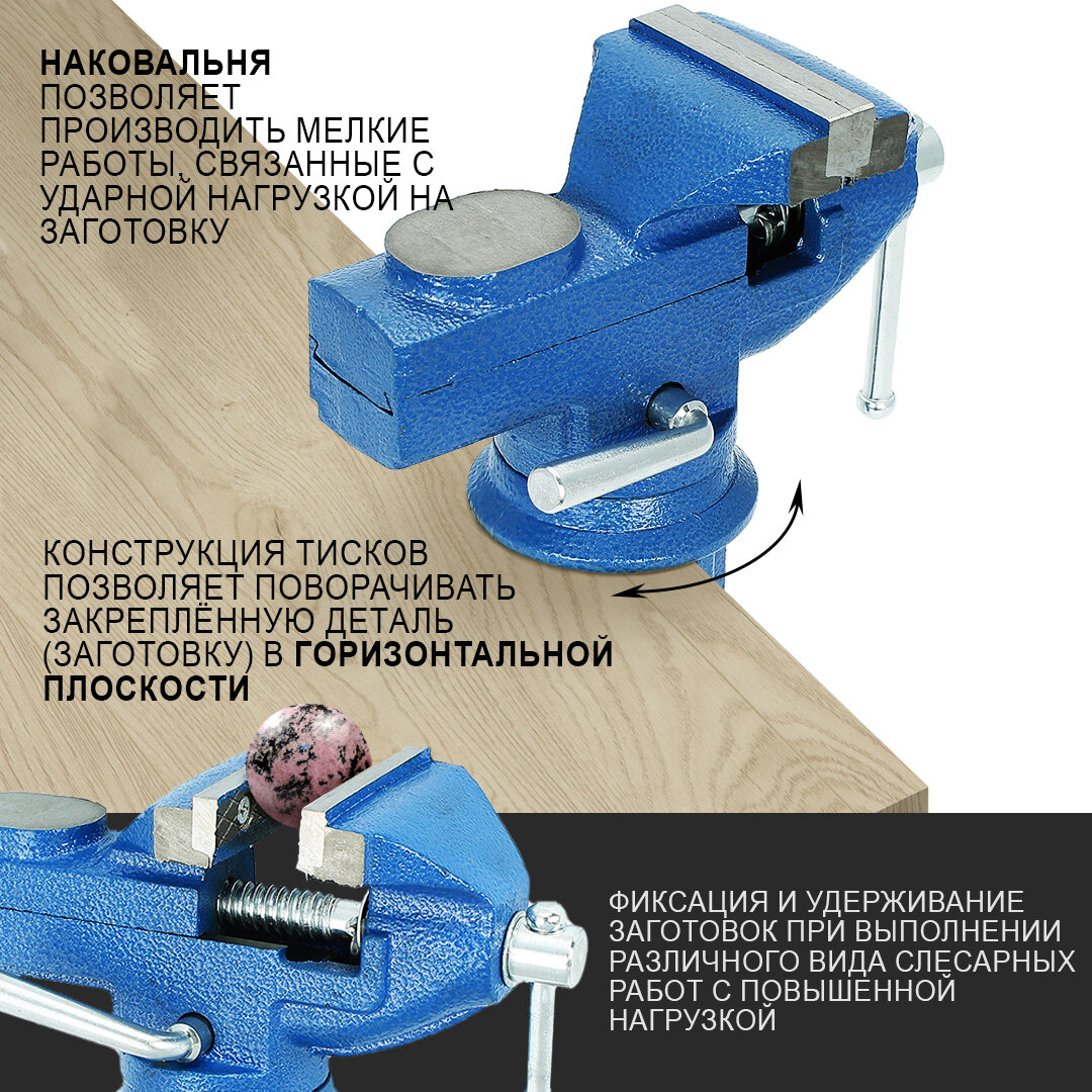 Тиски слесарные настольные, поворотные, с наковальней, ширина губок 65 мм интересное: